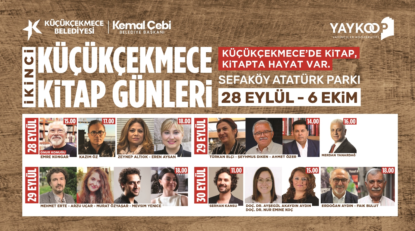 Yayıncılar Kooperatifi (YAYKOOP) işbirliğiyle gerçekleştirilecek Kitap Günleri, “Küçükçekmece’de Kitap, Kitapta Hayat Var” sloganıyla düzenlenecek. Onur konuğu Toplumbilimci, Akademisyen Emre Kongar’ın açılış oturumuyla başlayacak Küçükçekmece Kitap Günleri, 50’ye yakın yazarı ağırlayacak.