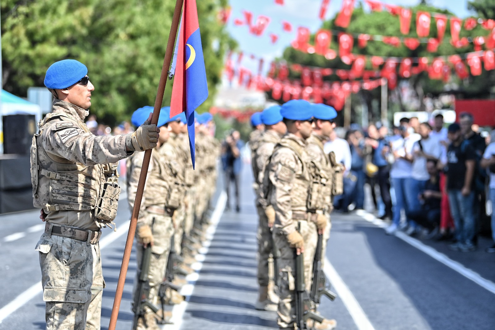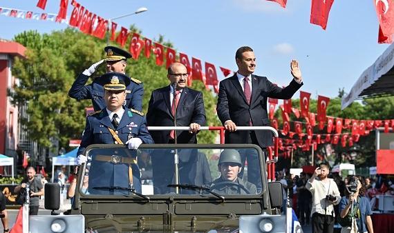 30 Ağustos Zafer Bayramı’nın 102. yıl dönümü kapsamında Kuvayı Milliye Meydanı’ndaki kutlama programı geçit töreniyle başladı. Geçit töreninde Vali İsmail Ustaoğlu, Hava Kuvvetleri Lojistik Başkanı Tümgeneral Hüseyin Duman ve Balıkesir Büyükşehir Belediye Başkanı Ahmet Akın vatandaşları selamlayarak 30 Ağustos Zafer Bayramı’nı kutladılar. Daha sonra askeri bando eşliğinde saygı duruşunda bulunulmasının ardından İstiklal Marşı okundu. Günün anlam ve önemine ilişkin konuşmayı yapan Hava Pilot Kurmay Albay Timur Geceoğlu’nun ardından Gençlik Merkezi’nin gönüllü gençleri, 30 Ağustos Zafer Bayramı ile ilgili şiirler okudu. Halk oyunları gösterilerinin sunulurken tören, askeri birliklerin geçişi ile son buldu.