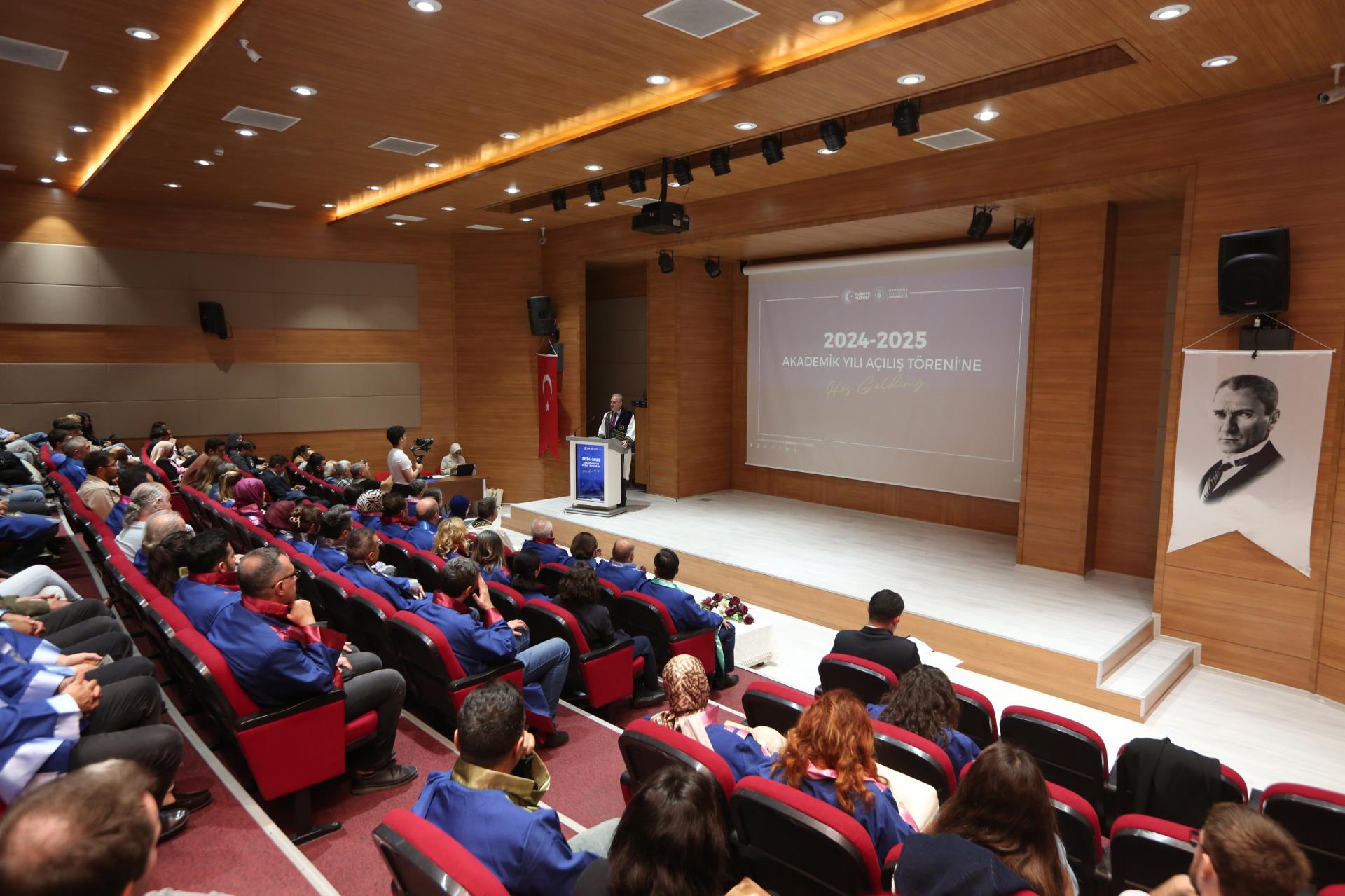 Saygı duruşu ve İstiklal Marşımızın okunmasıyla başlayan programın açış konuşmasını gerçekleştiren Rektör Prof. Dr. İsmail Boz, Üniversitenin kuruluşu, gelişimi ve hedefleri ile ilgili bilgi paylaşımında bulunarak yeni eğitim döneminin umut ve başarılarla dolu olmasını diledi. Üniversitenin yarına umut olacak nesiller yetiştirme gayreti içerisinde olduğunu söyleyen Rektör, akademik yılı açılış törenine teşriflerinden dolayı Kütahya Dumlupınar Üniversitesi Rektörü Prof. Dr. Süleyman Kızıltoprak’a teşekkürlerini ifade ederek sözlerini tamamladı.