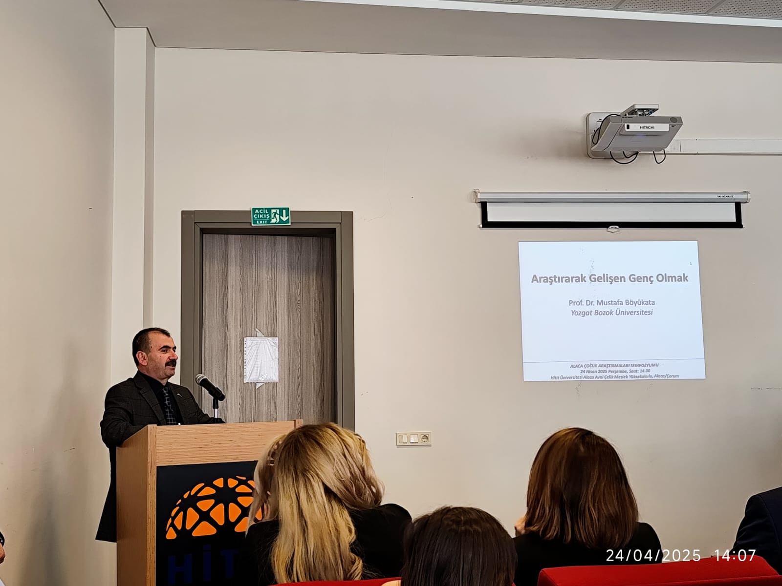 Prof. Dr. Mustafa Böyükata “Araştırarak Gelişen Genç Olmak” başlıklı konuşmasında, gençlerin bilimsel düşünceyle erken yaşta tanışmasının önemine dikkat çekti. Akademisyen ve protokol temsilcileriyle birlikte, Alaca İlçe Milli Eğitim Müdürü Emrullah Şahin, okul yöneticileri, öğretmen, öğrenci ve velilerin ilgiyle dinlediği konuşmasında Prof. Dr. Böyükata, her proje uygulamasının bitiminde, her araştırmanın sonunda, yeni yönelimlere sahip olabilmek ve yapılan çalışmaya ilişkin yeni bir öneri sunabilmek gerektiğine de vurgu yaptı ve bunu yapan çocuklara hitaben “Geleceğin araştırmacıları sizsiniz!” dedi.