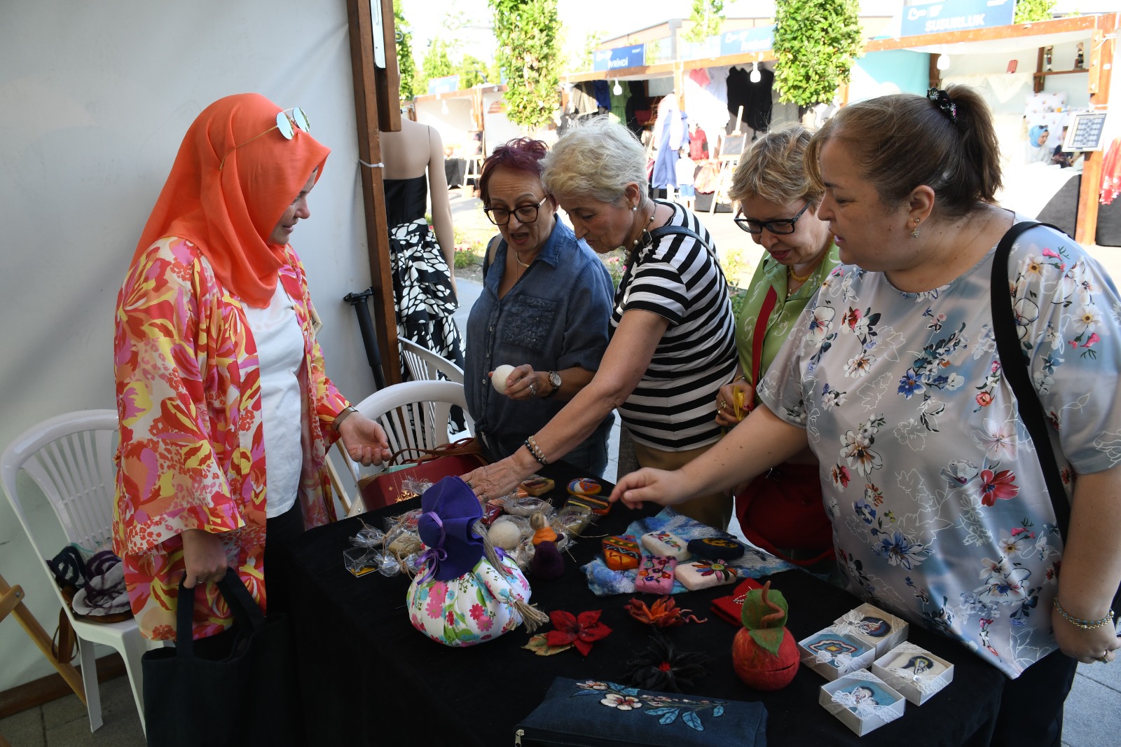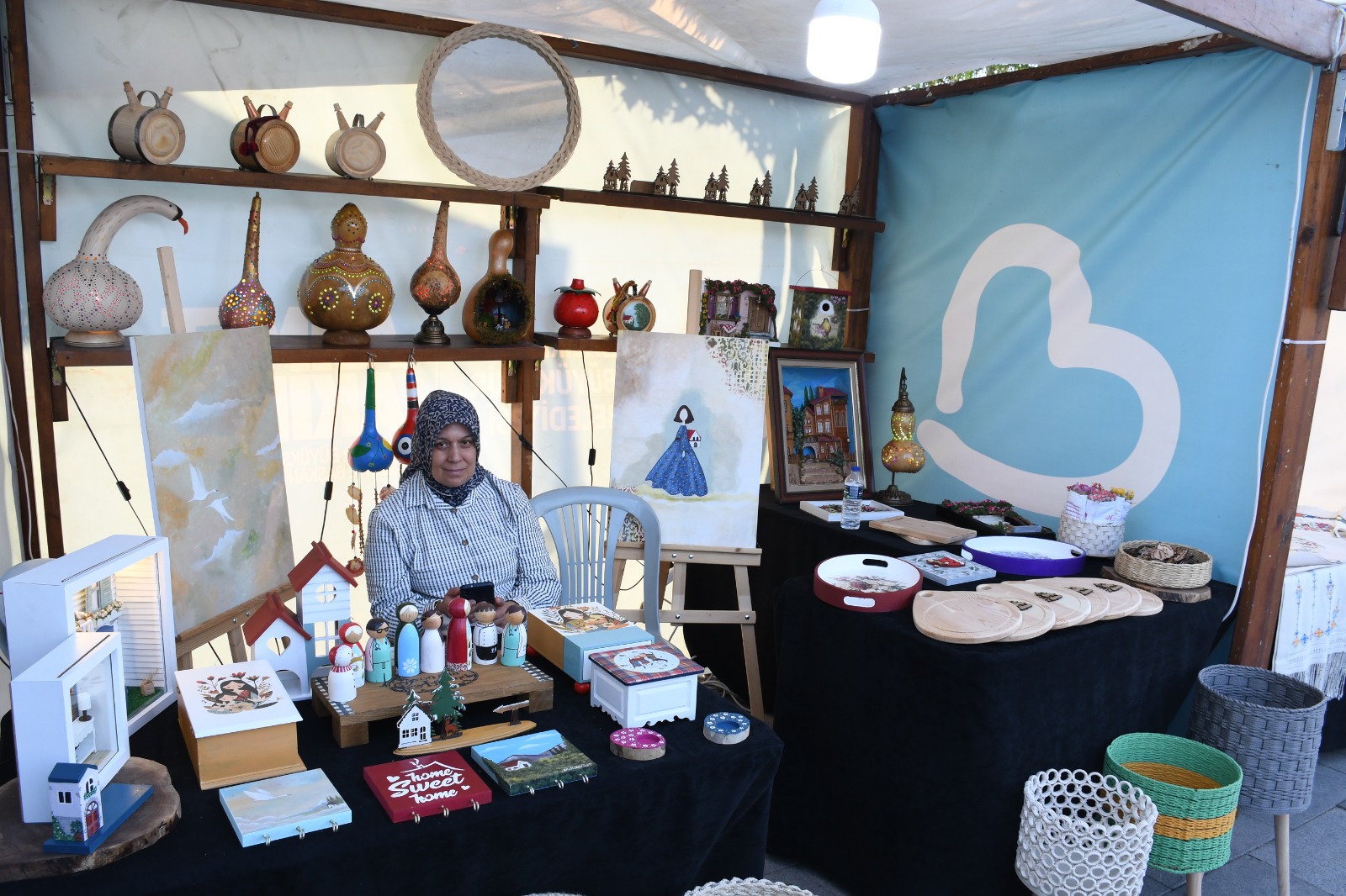 Stantlarda el emeği ürünler dikkat çekerken, sergi alanında da müzik dinletisi sunuldu. Balıkesir Büyükşehir Belediyesi’nin ev sahipliğinde düzenlenen sergide BALMEK kursiyerleri konuklara ürünlerle ilgili tek tek bilgi verdiler. Ayrıca İvrindi sepet örücülüğü, Susurluk tel kırma-etamin, Sındırgı halı dokuma-sepet-geri dönüşüm(gazete), Gömeç makrome-sepet örme, merkez çini yapımı workshopları da katılımcıların ilgisini çekti.