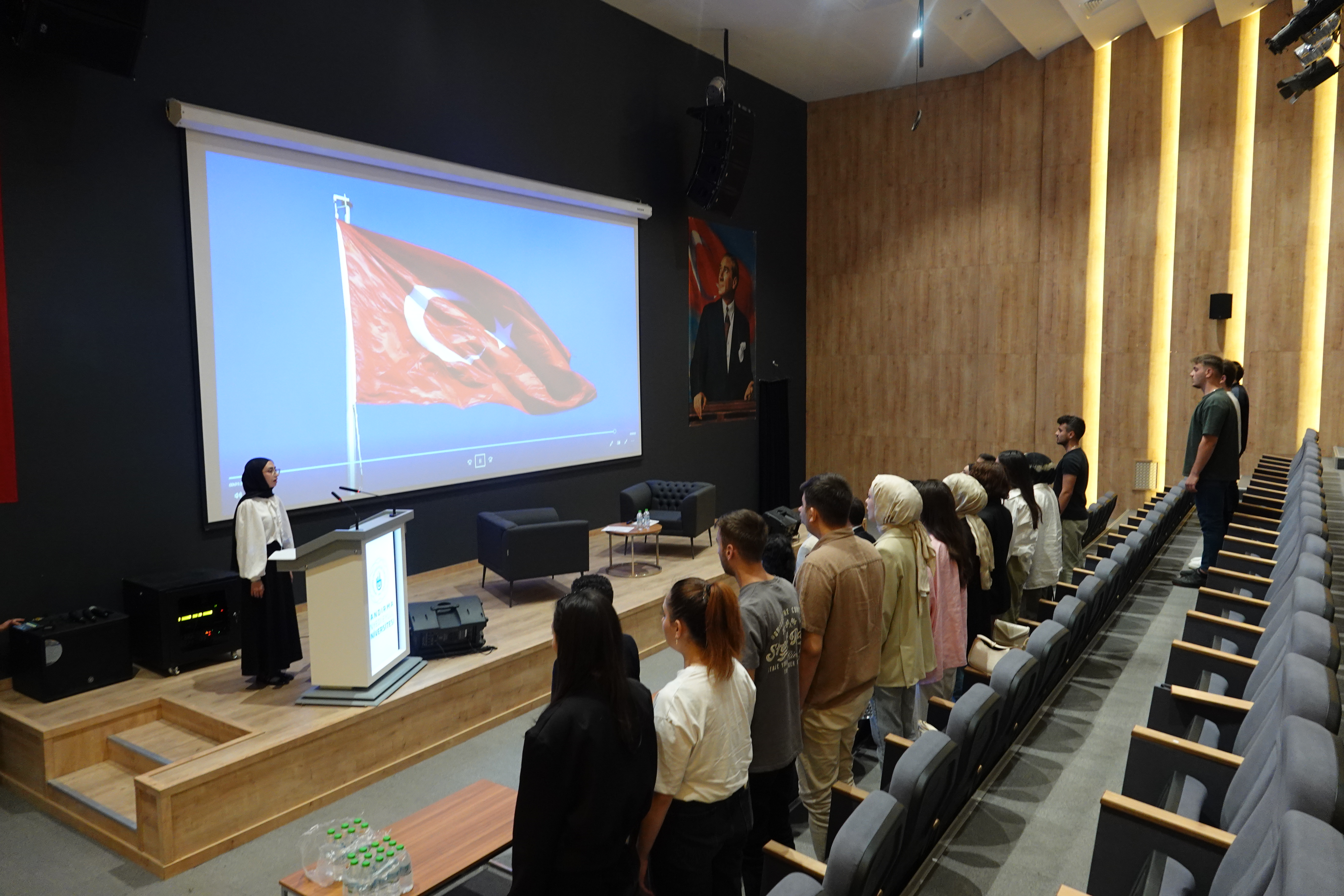 Şehitlerimiz adına saygı duruşu, İstiklal Marşımızın okunması sonrası söz alan;
