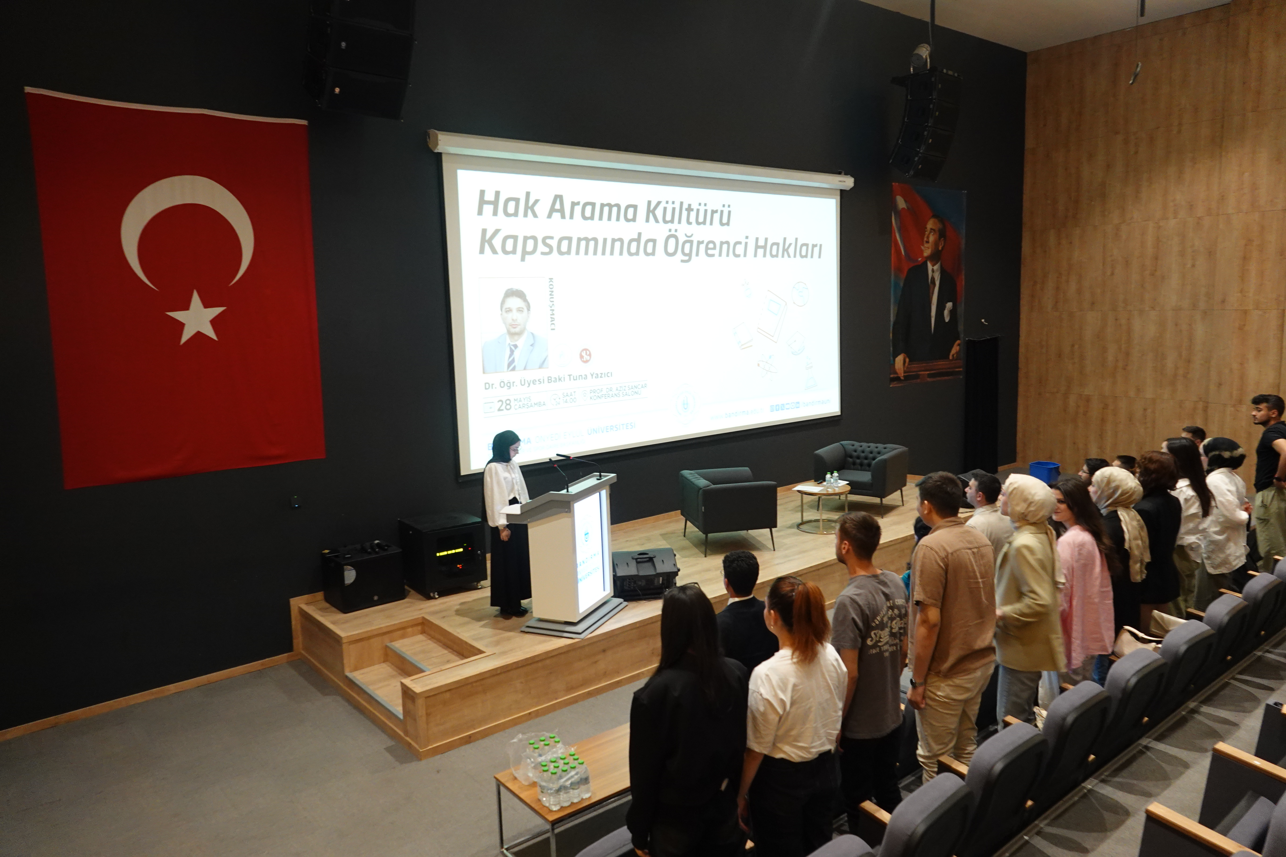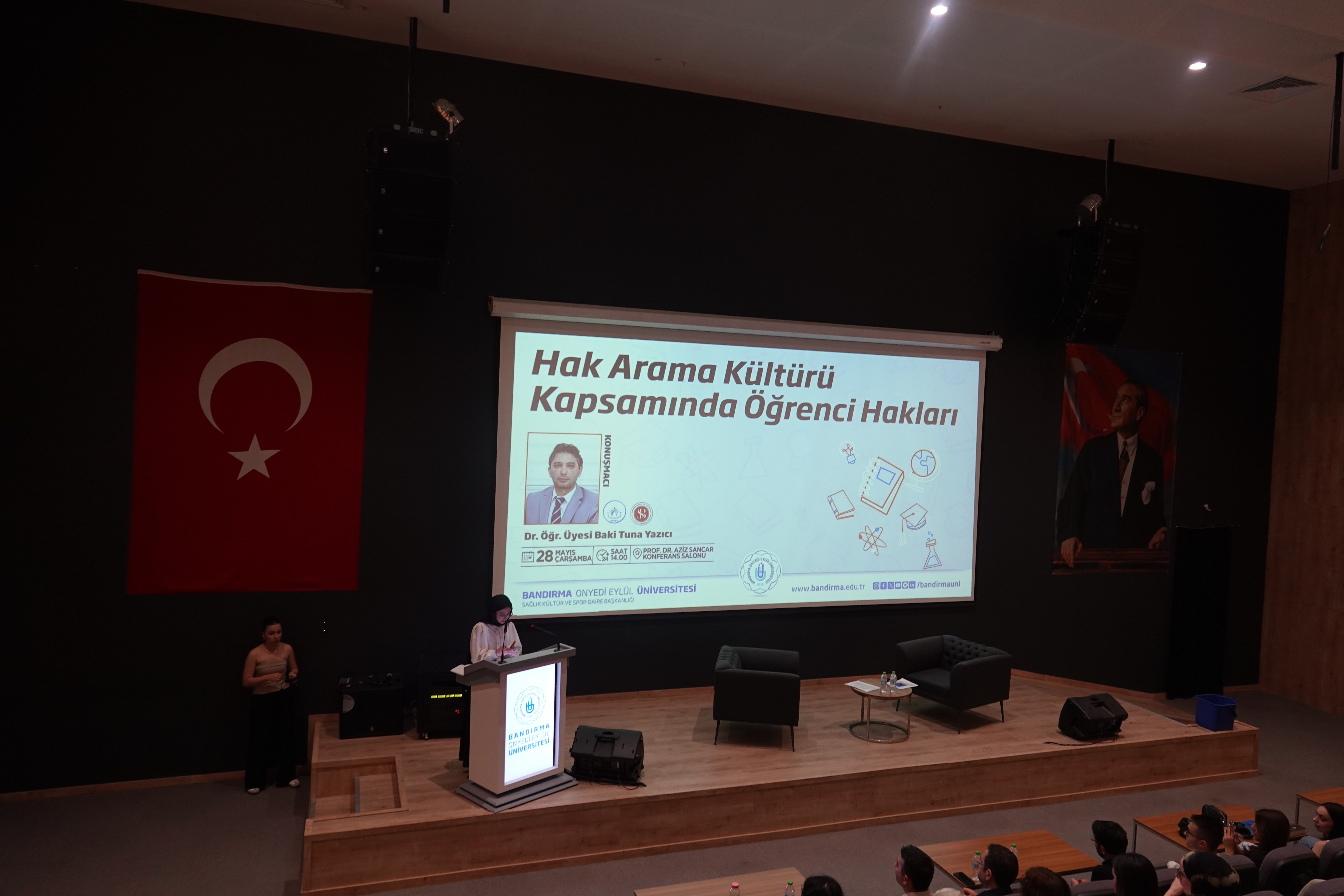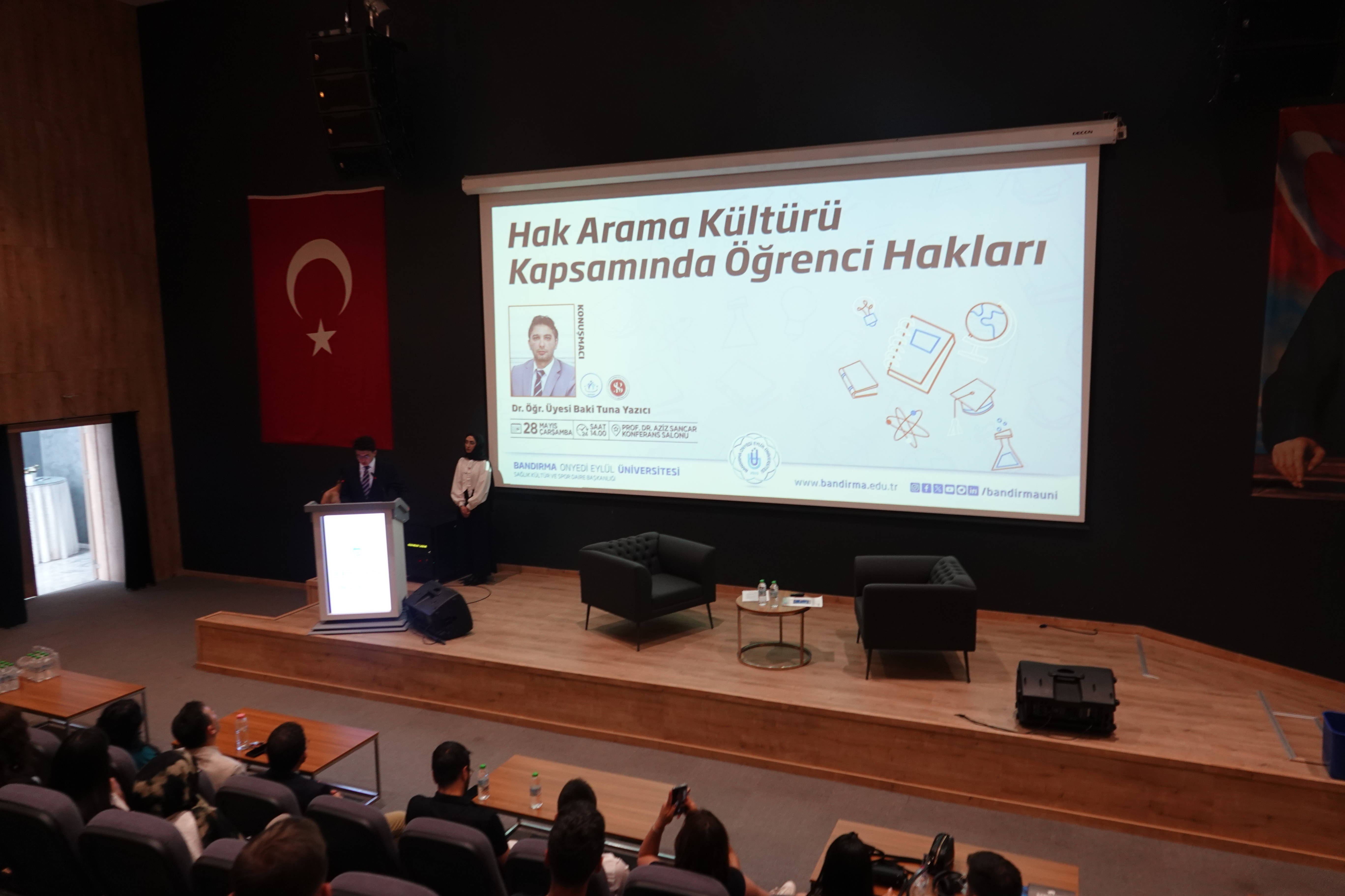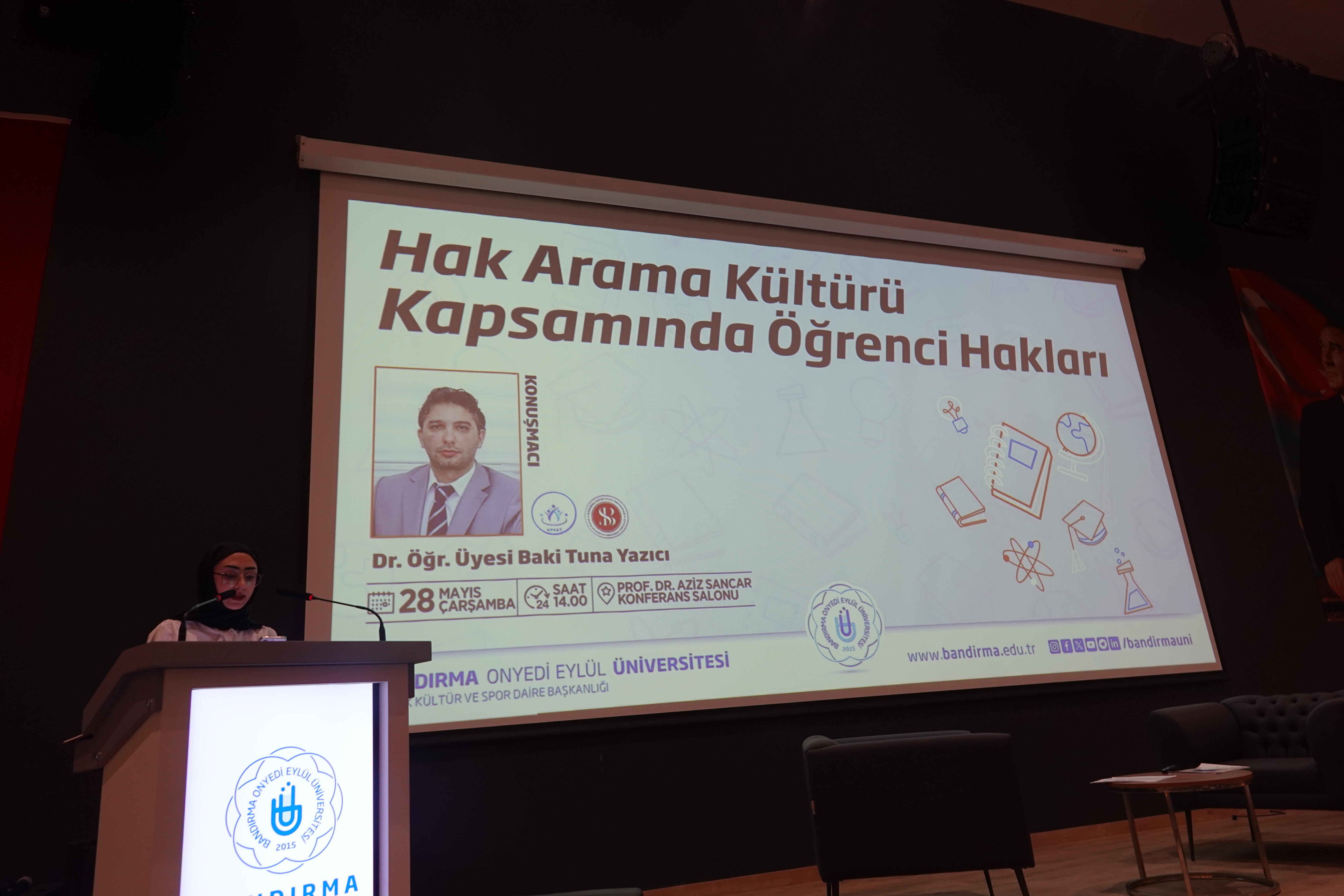 Hocamızın değerli sunumuyla öğrenci hakları konusunda edineceğimiz yeni bilgiler, bu alandaki ufkumuzu genişletecek ve daha cesur adımlar atmamızı sağlayacaktır. Bu konferansın, sorgulayan, araştıran ve haklarını yılmaz bir şekilde savunan bireyler olarak yetişmemize katkı sunmasını diliyorum.