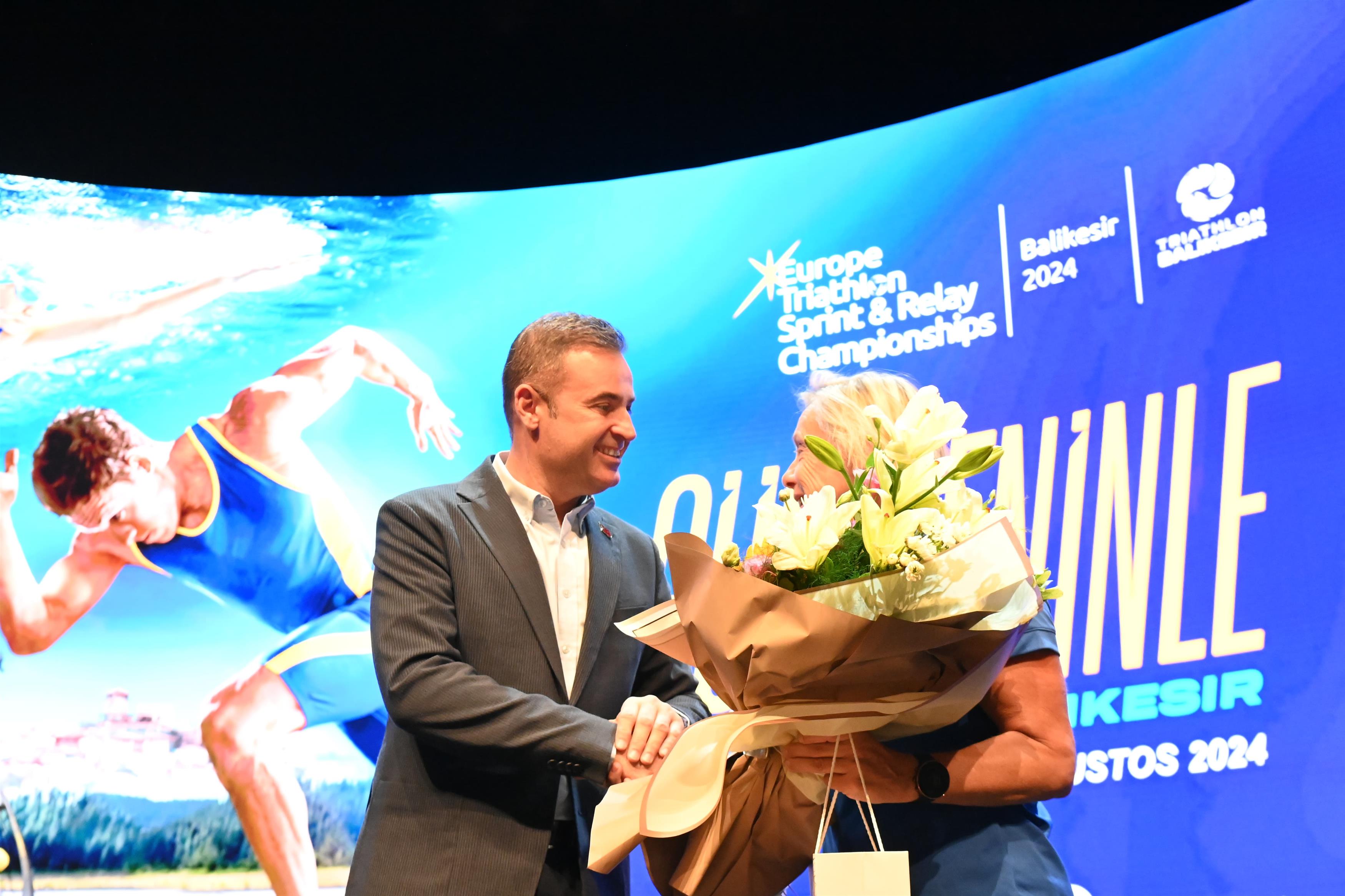 Konuşmaların ardından; Vali İsmail Ustaoğlu tarafından Triatlon Federasyonu Başkanı Bayram Yalçınkaya’ya, Başkan Ahmet Akın tarafından ise Avrupa Triatlon Birliği Genel Sekreteri Kathleen Smet’e çiçek ve hediye takdim edildi. Sonrasında Türk Milli Sporcuları sahneye davet edilerek hatıra fotoğrafı çekildi.
