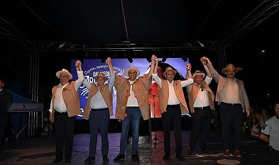 BAÇEM’de vatandaşlarla birlikte yılın ilk hasadını gerçekleştiren Balıkesir Büyükşehir Belediye Başkanı Ahmet Akın ile ilçe belediye başkanları hemen ardından üstü açık otobüslerle Burhaniye Belediyesi’nin önünden kortejin başlama noktasına kadar marşlar eşliğinde gitti. Burhaniye Belediyesi’nin önünde otobüslerden inerek traktörlere binen belediye başkanları, oradan Ören Meydanı’ndaki festival alanına kadar kortej halinde ilerledi. Festival alanında açılış konuşmalarına geçildi.