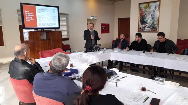 Eğitmenlik yapan alanında deneyimli akademisyenler, teorik bilgi ve tecrübelerini sabah oturumlarındaki derslerinde “Temel Kavramlar: Bilgi, Bilim, Araştırma, Hipotez”, “Proje Bileşenleri: Özgün Değer, Yöntem, Yönetim ve Yaygın Etki”, “Proje Hazırlık Süreçleri: Mevcut Durumun Analizi, Literatürün Önemi ve Planlama”, “Araştırmalarda Kütüphaneler ve Arşivler: Kaynakların Kritiği ve Yararlanma Yolları” ile “Bulguların Analizi, Yaygınlaştırma ve Yayın Etiği” başlıkları altında paylaştılar. Ayrıca uygulamaya dönük yaklaşımlarla TÜBİTAK-1001 başvuru formu üzerinden atölye çalışmaları ile akademik üretkenliği artırmaya yönelik ipuçları verdiler.