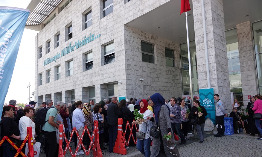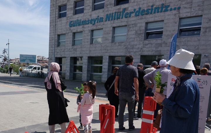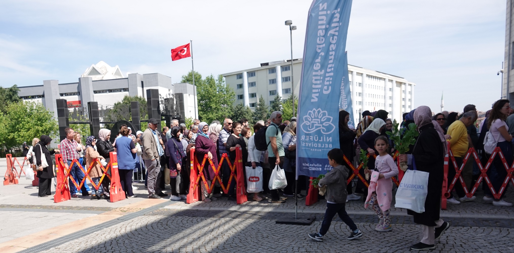 Küçük bahçelerde, balkonlarda, teraslarda sebze yetiştirmek üzere fide almaya gelen yüzlerce doğasever, sabah saatlerinde Nilüfer Belediyesi önünde kuyruğa girerek fidelerin dağıtım saatini beklediler.