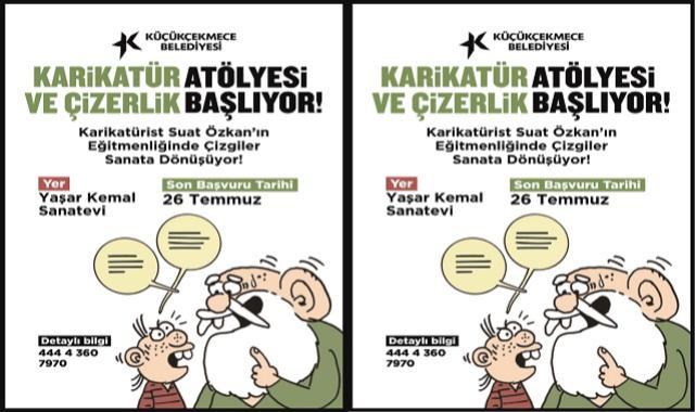 Küçükçekmece Belediyesi, Yaşar Kemal Sanat Evi’nde meraklılarına, mizahi yönlerini geliştirebilecekleri Karikatür ve Çizerlik Atölyesi’nin yanı sıra bir yerden başlamak isteyen film meraklılarına yönelik ‘Reels Filmini Çek’ Atölyesi gerçekleştirecek. Reels Filmini Çek Atölyesi’nin yanı sıra Karikatürist Suat Özkan eğitmenliğinde gerçekleştirilecek Karikatür ve Çizerlik Atölyesi için son başvuru tarihi 26 Temmuz. Atölyelere başvurular 444 4 360/7970 numaralı telefondan gerçekleştirilecek.