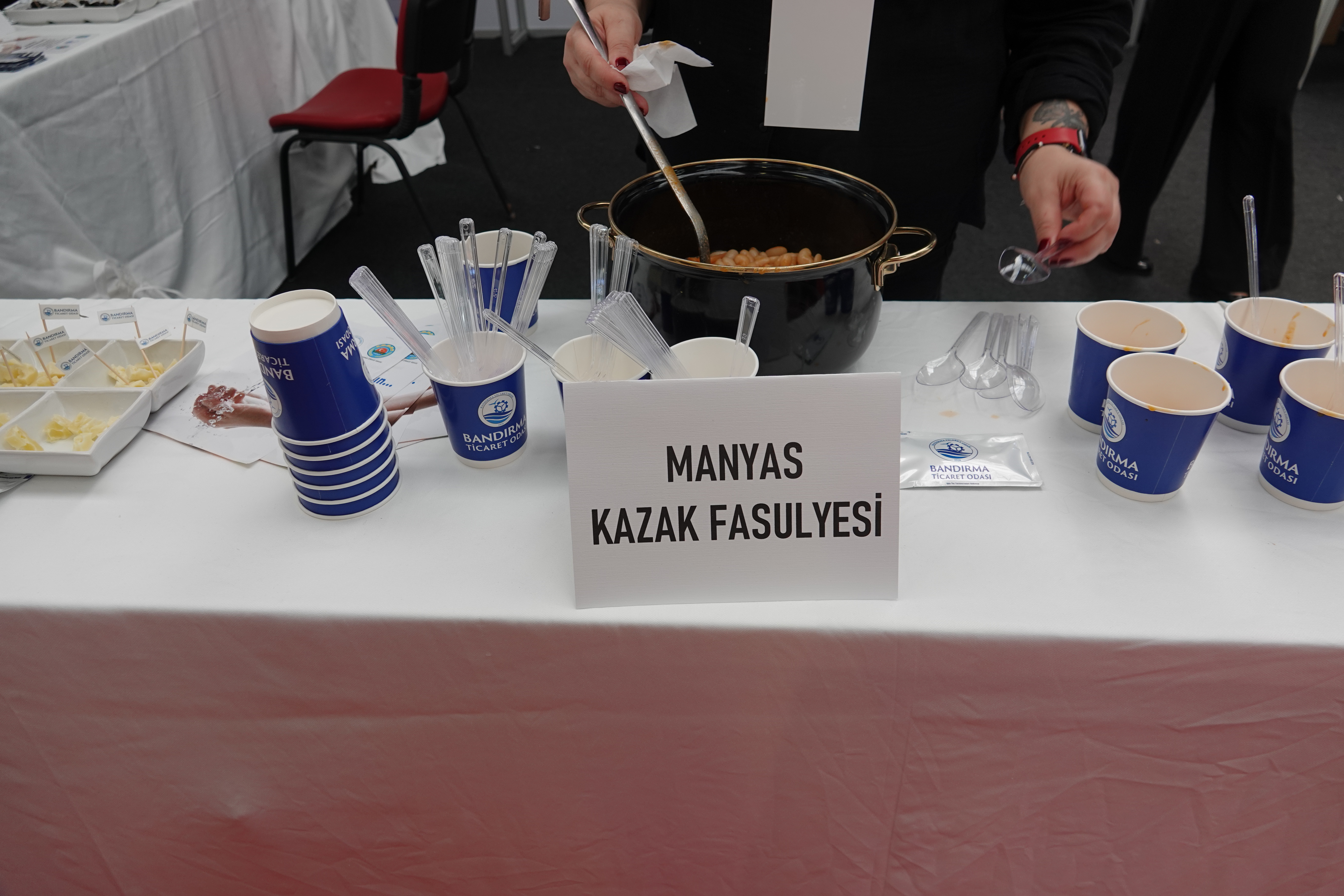 Bandırma Ticaret Odası standında Coğrafi İşaretli Kazak Fasulyesi, Kelle Peyniri, Edincik Su Zeytini-Zeytinyağı, Çakıl Kestanesi ikramları yapıldı.