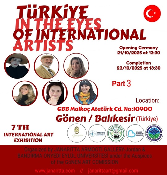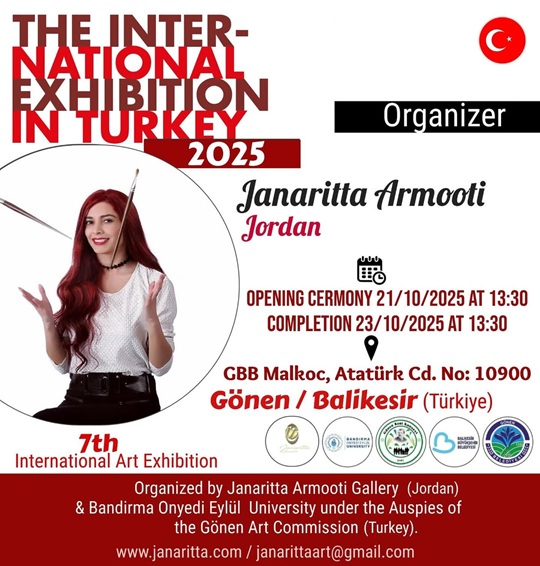 Bandırma Onyedi Eylül Üniversitesi Gönen Meslek Yüksekokulu Gönen Sanat Komisyonu tarafından, Balıkesir Büyükşehir Belediyesi, Gönen Belediyesi ve Gönen Kent Konseyi’nin destekleriyle; Ürdün’de bulunan Janaritta Armooti Gallery iş birliğiyle “The International Exhibition in Türkiye” adlı uluslararası sergi düzenlenecektir.