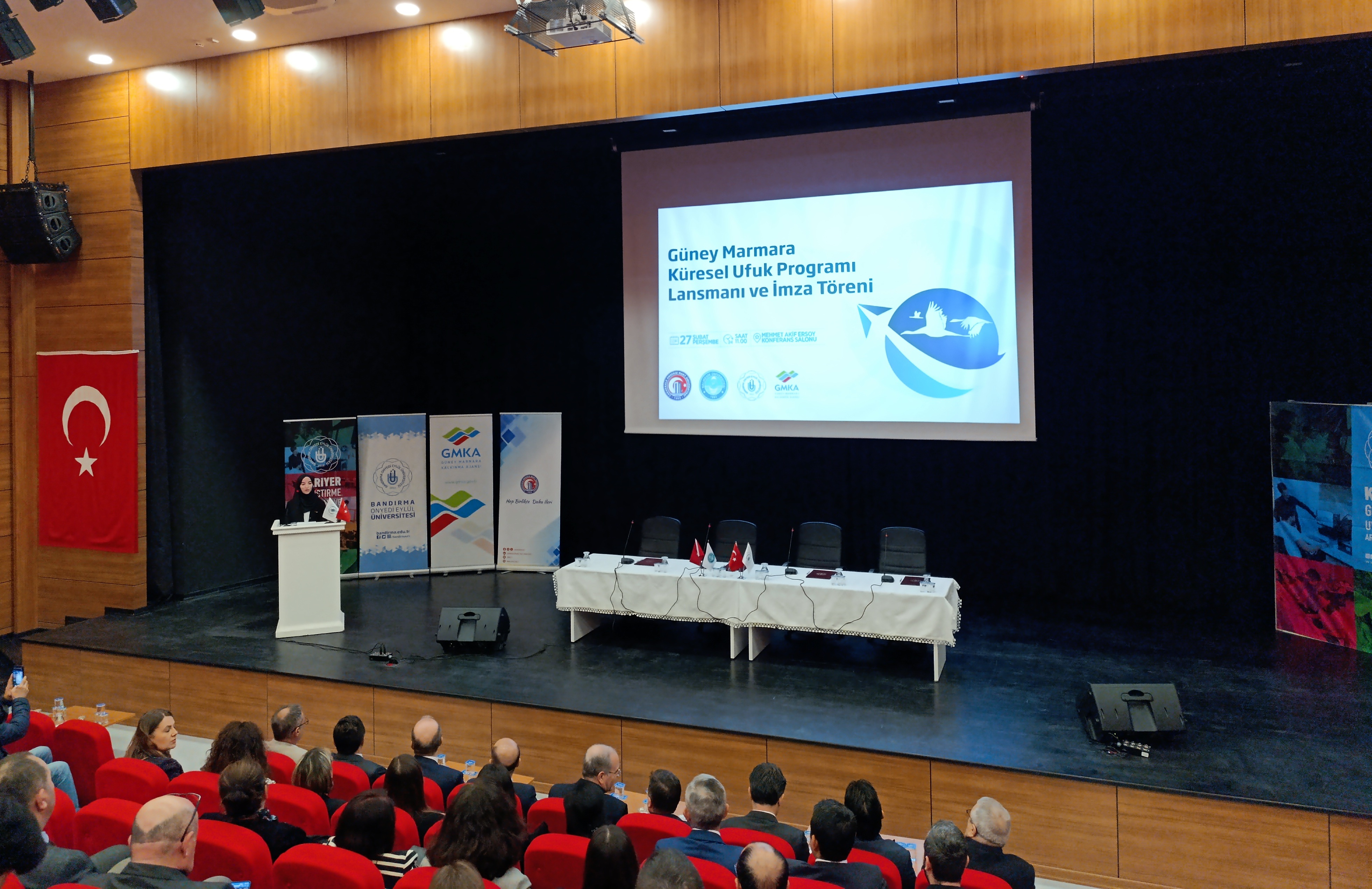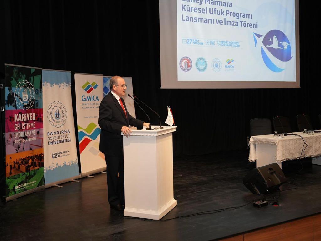 Saygı duruşunda bulunulması ve İstiklal Marşımızın söylenmesinin ardından başlayan programın açış konuşmasını GMKA Genel Sekreteri Onur Adıyaman gerçekleştirdi. Programın amacı ve bölge için taşıdığı önem hakkında konuşan GMKA Genel Sekreteri Onur Adıyaman, GMKA’nın daha önce paydaş olduğu ve bizzat yürüttüğü projeler bağlamında Güney Marmara Ufuk Programı’nın mahiyetine değinerek “Umuyorum ki bu değerli proje, ulusal ve küresel bazda bir örnek teşkil eder.” ifadelerini kullandı.