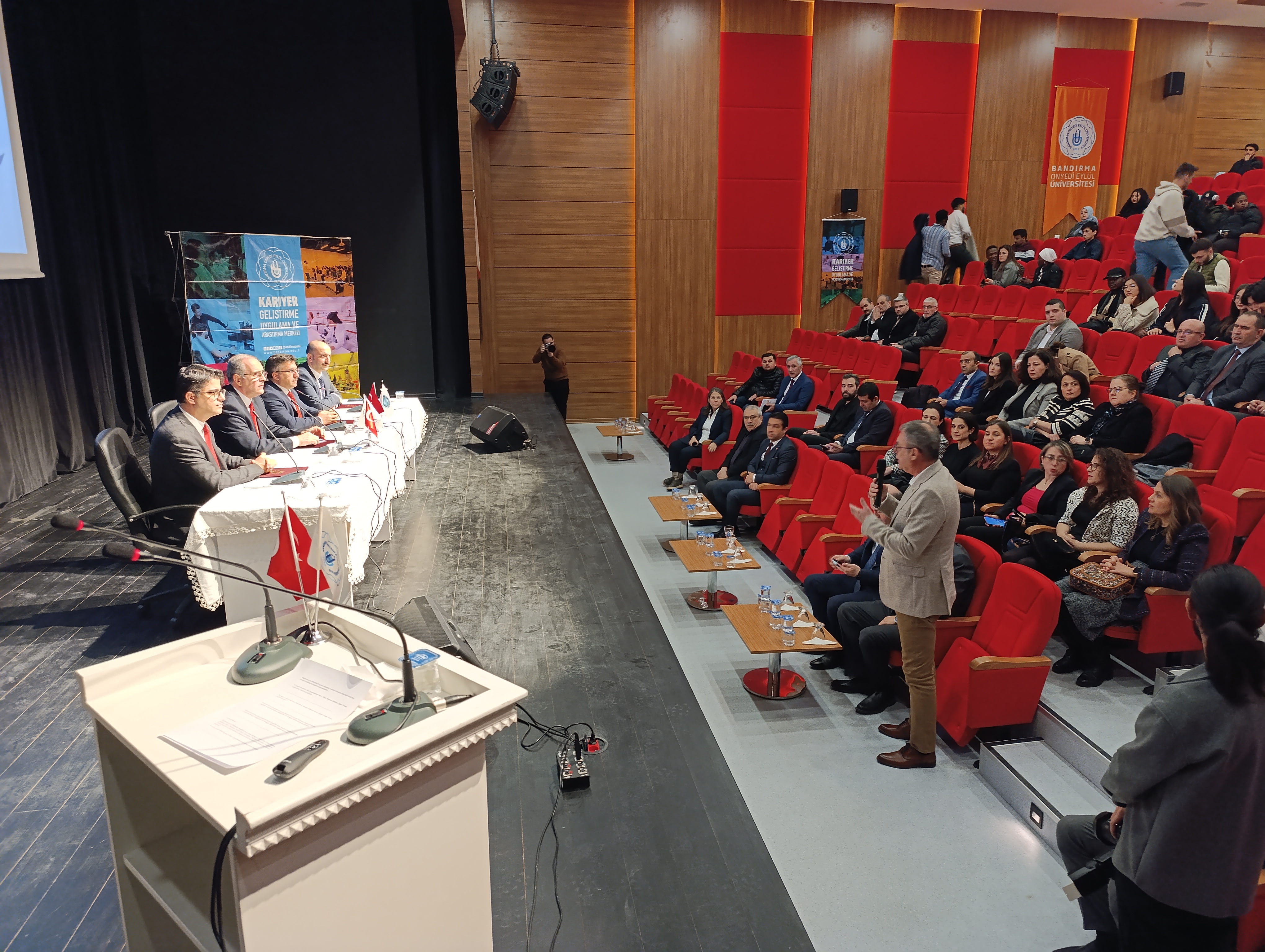 BANÜ Merkez Derslik binasında bulunan Mehmet Akif Ersoy Konferans Salonunda gerçekleştirilen programa; Bandırma Onyedi Eylül Rektörü Prof. Dr. İsmail Boz, Çanakkale Onsekiz Mart Üniversitesi Rektörü Prof. Dr. Ramazan Cüneyt Erenoğlu, Balıkesir Üniversitesi Rektörü Prof. Dr. Yücel Oğurlu, Güney Marmara Kalkınma Ajansı Genel Sekreteri Onur Adıyaman, BANÜ Rektör Yardımcıları Prof. Dr. Ebru Kaya Mutlu ile Prof. Dr. Mehmet Emin Erçakar, Bandırma Ticaret Borsası Başkanı Can Ata Tan, Balıkesir Sanayici ve İş İnsanları Derneği Başkanı (BASİAD) Selçuk Savaş, Güney Marmara Bölgesi’nde faaliyet gösteren oda ve borsa temsilcileri, iş insanları, sivil toplum kuruluşları temsilcileri, akademisyenler, öğrenciler ve basın mensupları katıldı.
