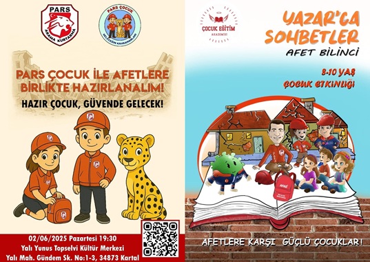 Etkinlik kapsamında, 8-10 yaş arası çocuklara ve ailelerine yönelik olarak tasarlanan Eğitimci Yazar Gürkan Kap’ın sunumu ile “Yazar’ca Sohbetler Afet Bilinci” etkinliği çocuklar ile buluşuyor. Çocuklara yönelik örnek çalışma ve faaliyetlerin yapılacağı Pars Çocuk Kulübü misyonu doğrultusunda katılımcılara tanıtılıyor. Yapılacak etkinlik ile birlikte afetlere karşı hazır, bilinçli ve gönüllü bireylerin yetişmesine katkı sağlanması amaçlanıyor.