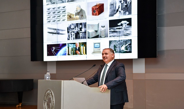 “İlk ders” için kürsüye gelen Rektör Prof. Dr. İsmail Koyuncu, öncelikli olarak İTÜ MTAL’in sıradan bir lise olmadığını, İTÜ şemsiyesi altında bulunduğunu ifade etti. Her yıl daha başarılı dilimden öğrenci almaya istikrarla devam ettiğinin altını çizen Koyuncu liseli öğrencilere “sürdürülebilirlik” kavramının önemi üzerine bir sunum yaptı. Prof. Dr. Koyuncu, günümüzün “geri dönüşüm” ekonomisinden artık “döngüsel” ekonomiye geçiş yapmaya başlandığını, bu anlamda insanoğlunun atık üretmemeye odaklanması gerektiğini vurguladı.