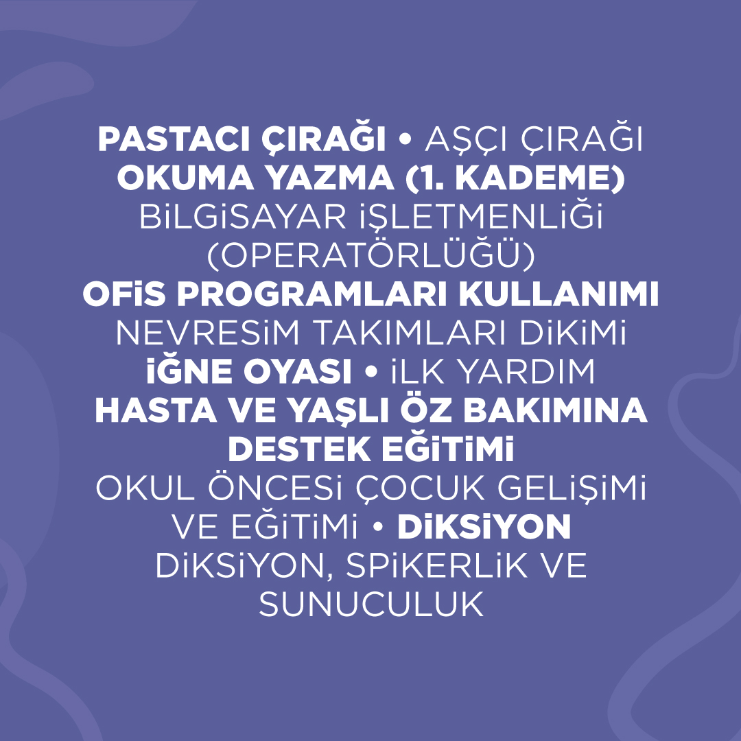 Küçükçekmece Belediyesi ve Halk Eğitim Merkezi işbirliği ile hayata geçirilen kurslara katılan kadınlar, hem meslek ediniyor hem de aile ekonomisine katkıda bulunuyor. Ayrıca kursları başarı ile tamamlayan kursiyerler Milli Eğitim Bakanlığı onaylı sertifika almaya hak kazanıyor.12 BRANŞTA EĞİTİM Kadın ve Aile Hizmetleri Müdürlüğü bünyesinde hizmet veren Kadın Eşitlik Merkezinde; Pastacı ve Aşçı Çırağı, Okuma Yazma, Bilgisayar İşletmenliği, Ofis Programları Kullanımı, Nevresim Takımları Dikimi, İğne Oyası, İlk Yardım, Hasta ve Yaşlı Öz Bakımına Destek Eğitimi, Okul Öncesi Çocuk Gelişimi ve Eğitimi, Diksiyon, Spikerlik ve Sunuculuk gibi 12 branşta ücretsiz eğitim verilecek.KAYITLAR 2-13 EYLÜL TARİHLERİNDE ALINACAKKadın Eşitlik Merkezi, toplumsal cinsiyet eşitliğini teşvik etmenin yanı sıra düzenlediği kurslarla kadınlara meslek edindiriyor ve iş hayatında kadın istihdamının artırılmasını sağlıyor. Hobi ve meslek edindirme kurslarına katılmak isteyenlerin; 1 adet nüfus cüzdanı fotokopisi, 1 adet vesikalık fotoğraf, ikametgah belgesi ve öğrenim belgesi ile İnönü Mahallesi’ndeki Kadın Eşitlik Merkezi’ne kayıt yaptırması gerekiyor.Kadın Eşitlik Merkezi yeni dönem kursları hakkında ayrıntılı bilgi almak isteyenler 444 4 360/8020-8021 numaralı telefonu arayabilirler.
