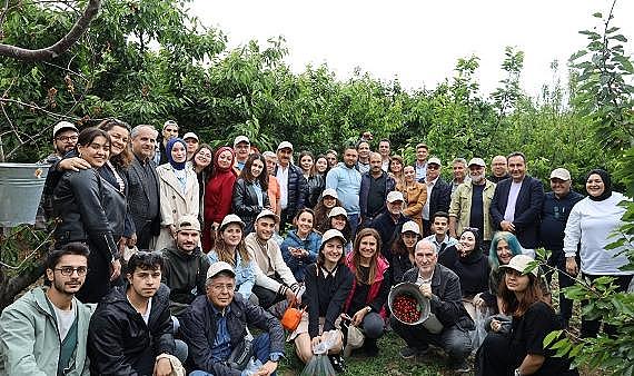 Kiraz Hasat Şenliği’ne, Ege Yaş Meyve Sebze İhracatçıları Birliği’nin ‘Üçüncü Kuşak Tarım Girişimciliği Eğitim Programı’nı tamamlayan gıda ve ziraat mühendisliği mezunu ya da öğrencisi gençlerde katıldı. Tarım gönüllüleri, gençlikleriyle kiraz hasat şenliğine enerji kattı.