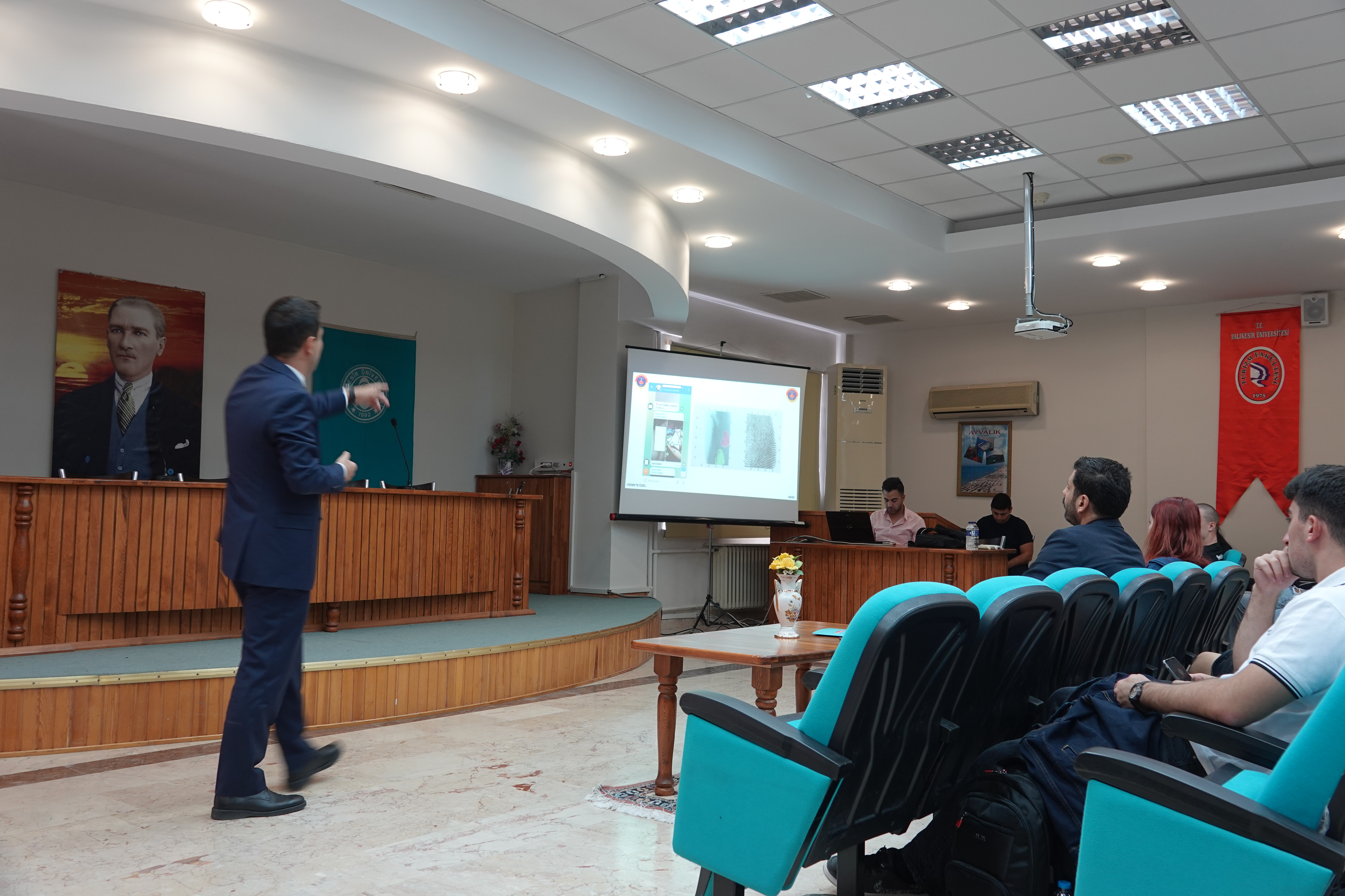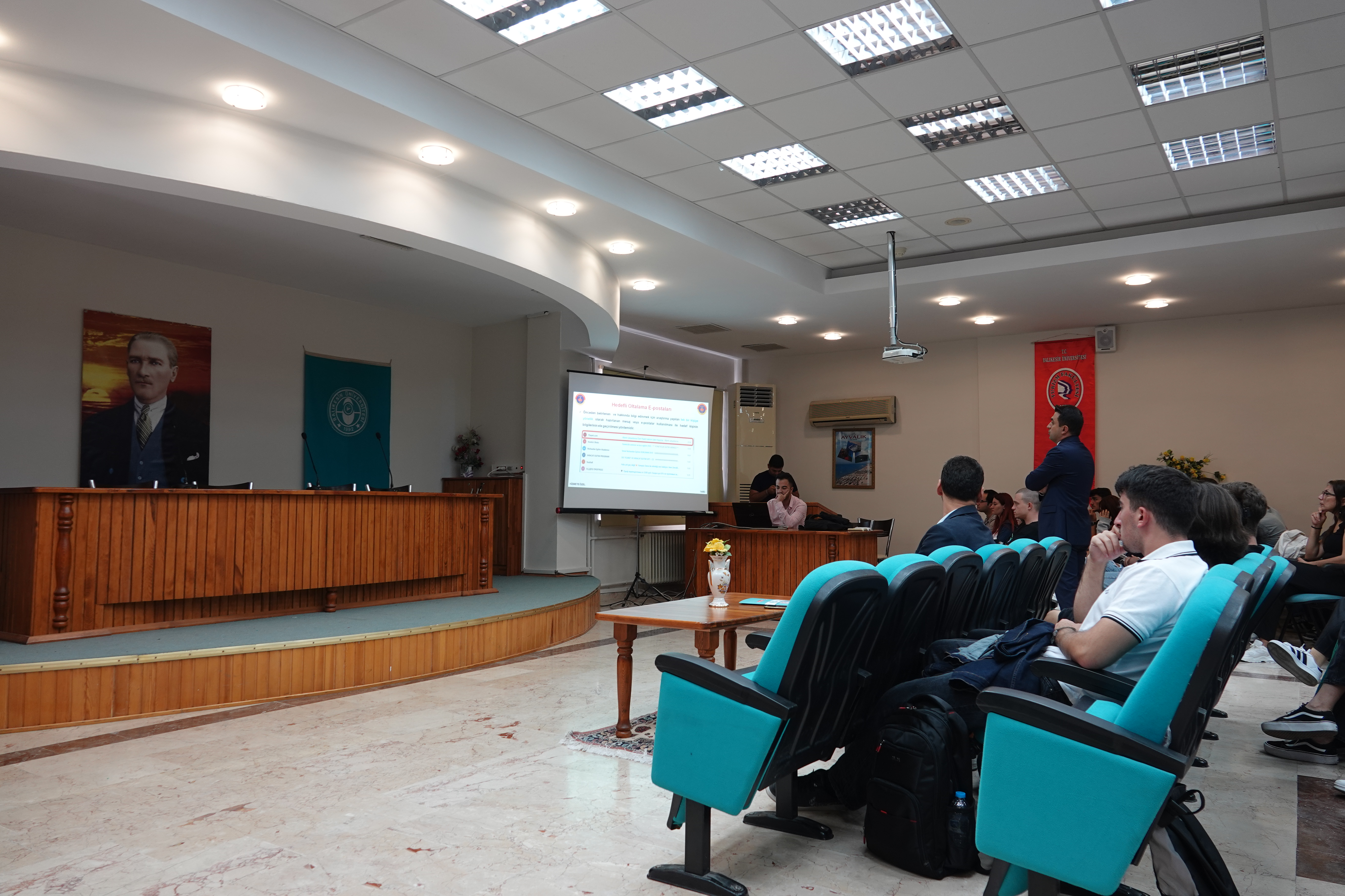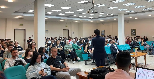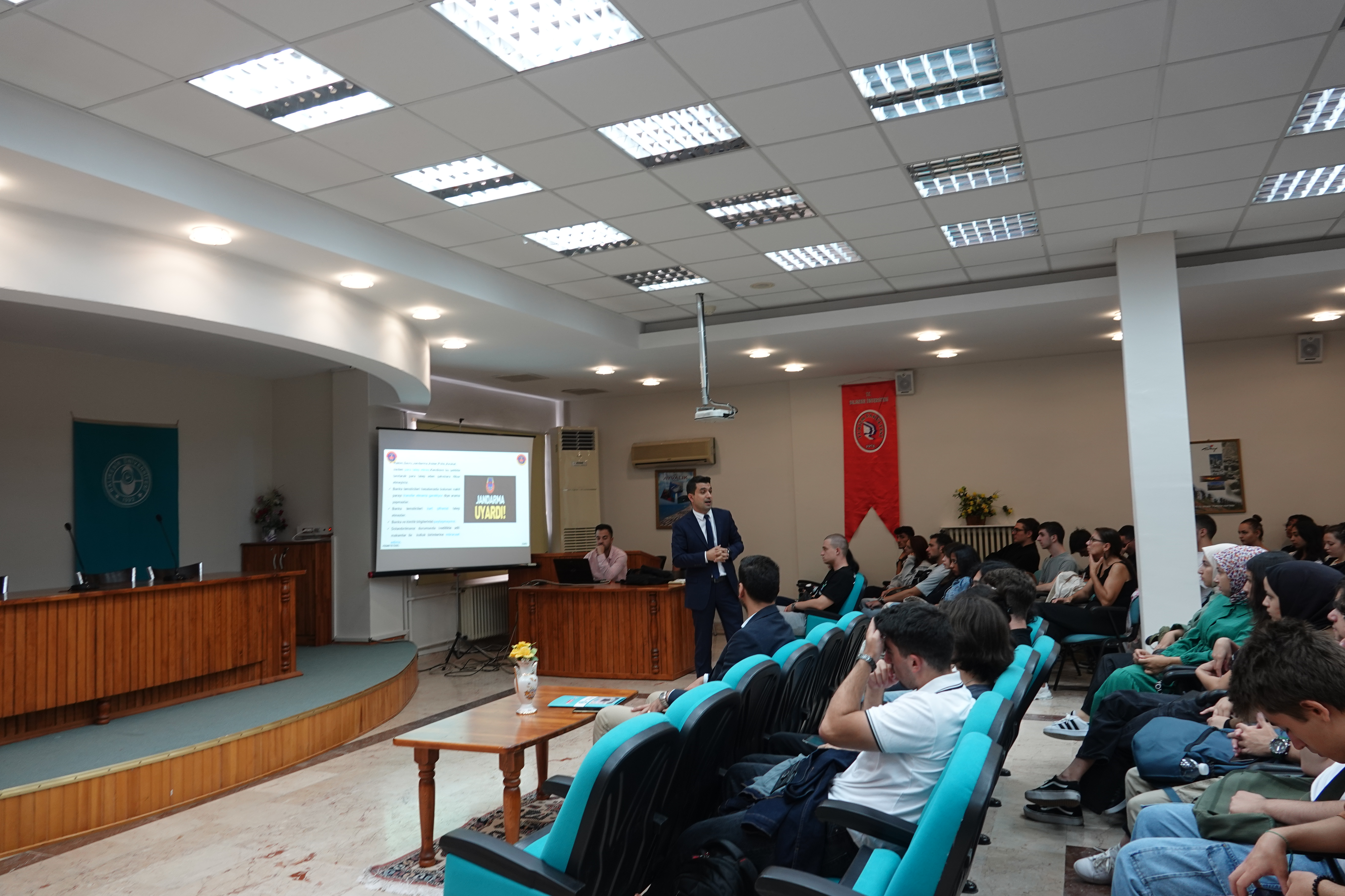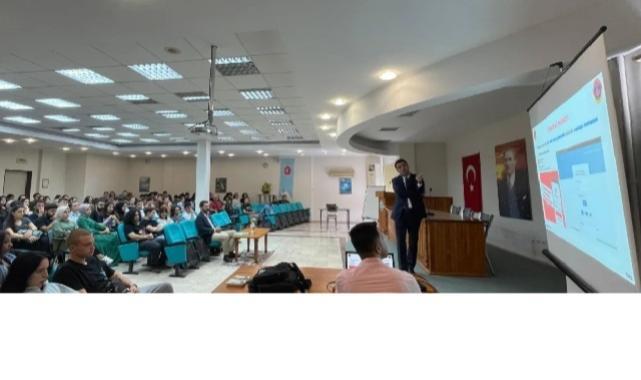 Konferans Salonunda gerçekleştirilen semineri Balıkesir İl Jandarma Komutanlığı Sibel Suçlarla Mücadele Şube Müdürlüğünden J. Ütgm. Gürcan Büyükkömürcü verdi.