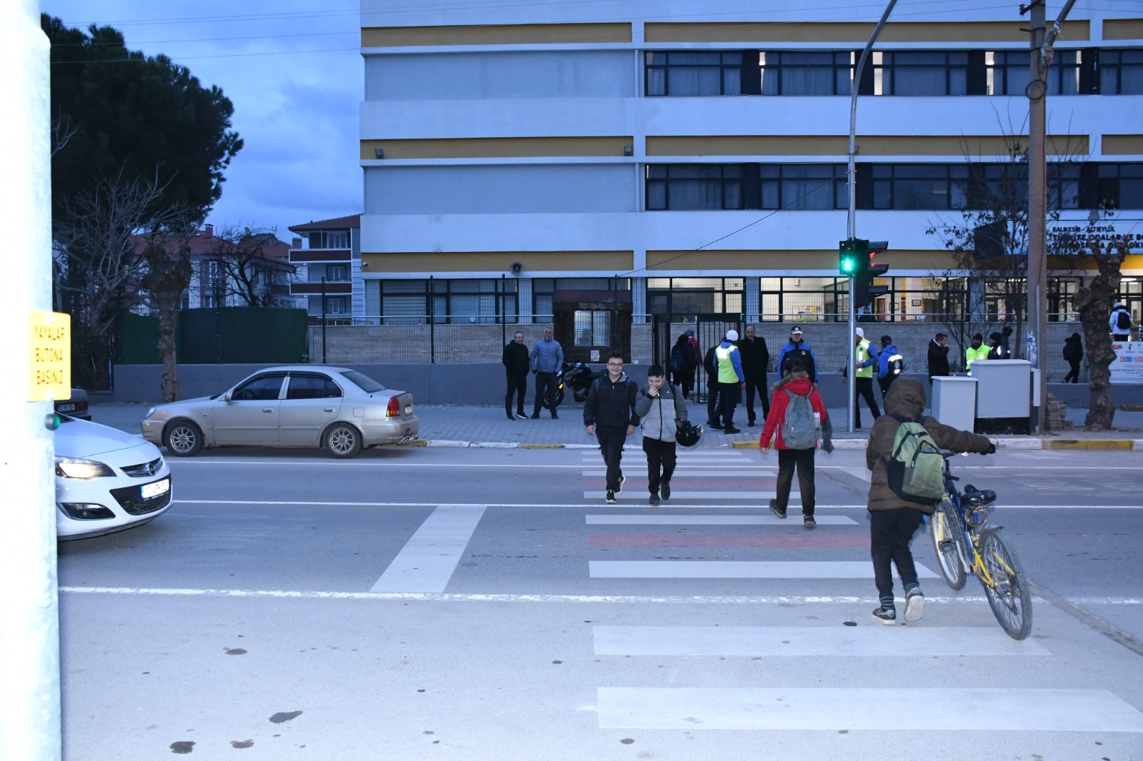 Şehrin belirli noktalarında yayaların karşıdan karşıya geçişlerini daha güvenli hale getirmek için sinyalizasyon sistemi çalışması başlattıklarını söyleyen Balıkesir Büyükşehir Belediyesi Trafik Hizmetleri Şube Müdürü Burçin Bölükler, “Yayalarımızın ve öğrencilerin can güvenliğini sağlamak için butonlu sinyalizasyon yaya geçidini aktif hale getirmiş bulunmaktayız. Aynı zamanda Ulaşım Denetleme Şube Müdürlüğüne bağlı ekiplerimiz öğrencilerimize servis şoförü ve rehber personel sorumluluğunun farkında olması için broşürlerini dağıtmaktadır. Balıkesir Büyükşehir Belediye Başkanımız Ahmet Akın’ın talimatlarıyla şehrin farklı noktalarında sinyalizasyon sistemini aktif hale getirme çalışmalarımız devam etmektedir” şeklinde konuştu.