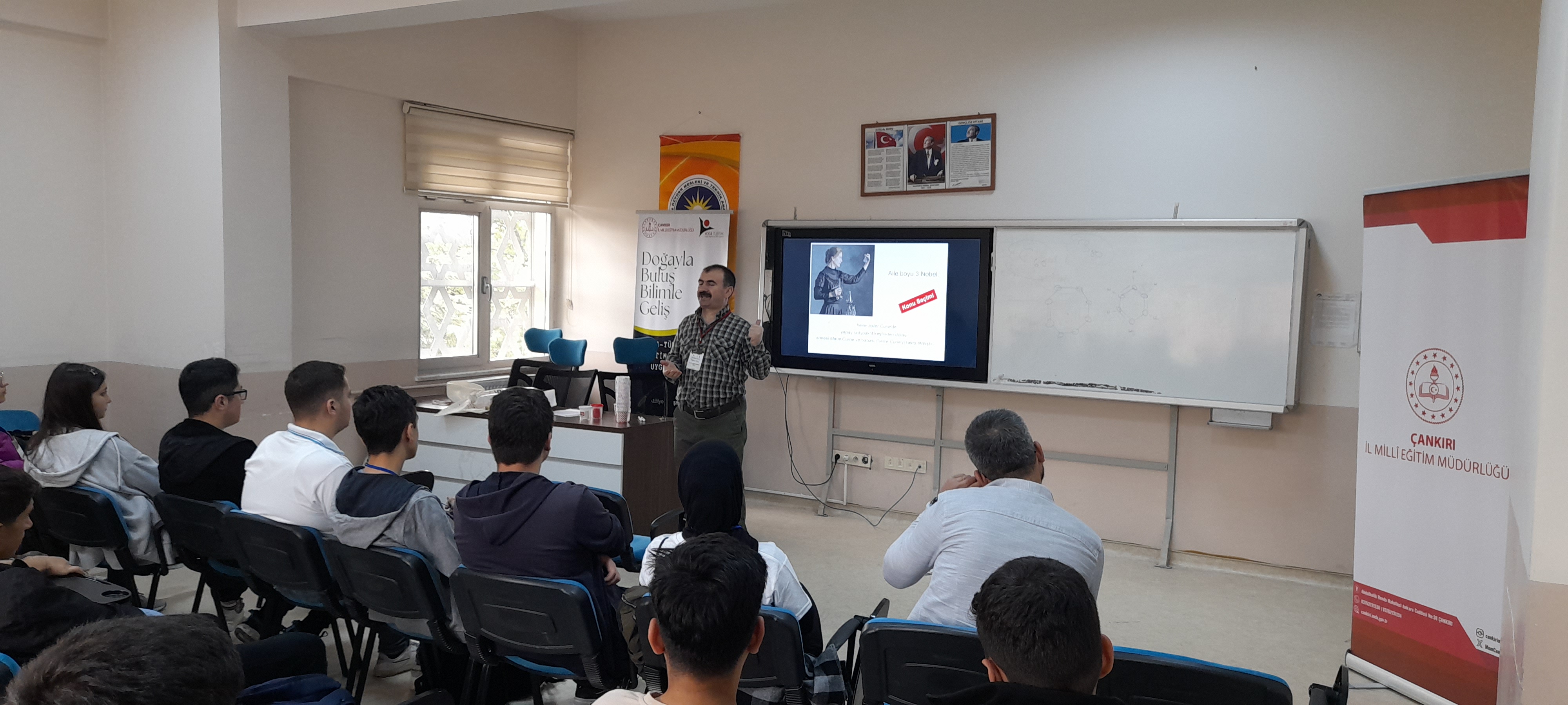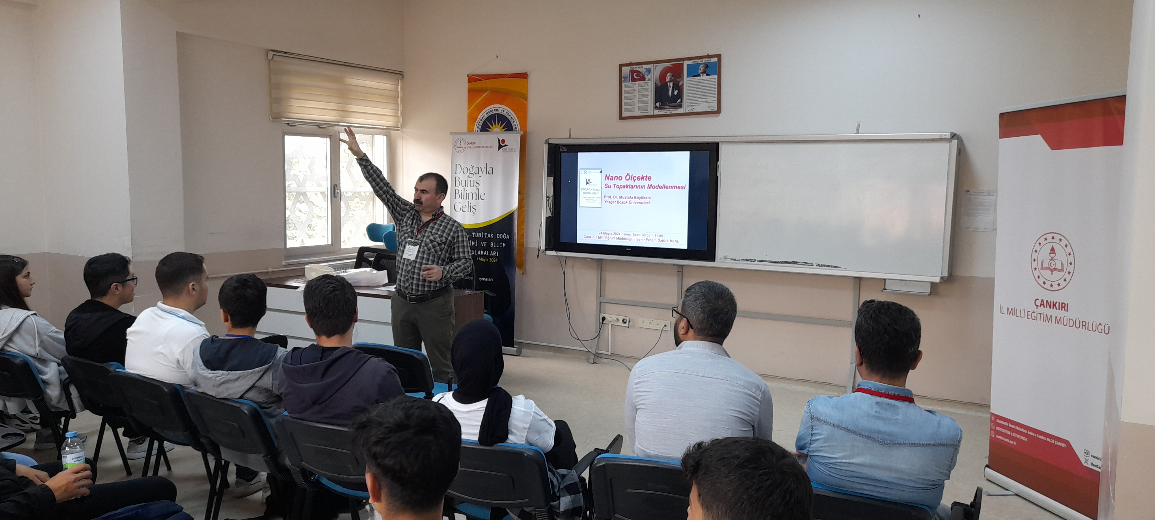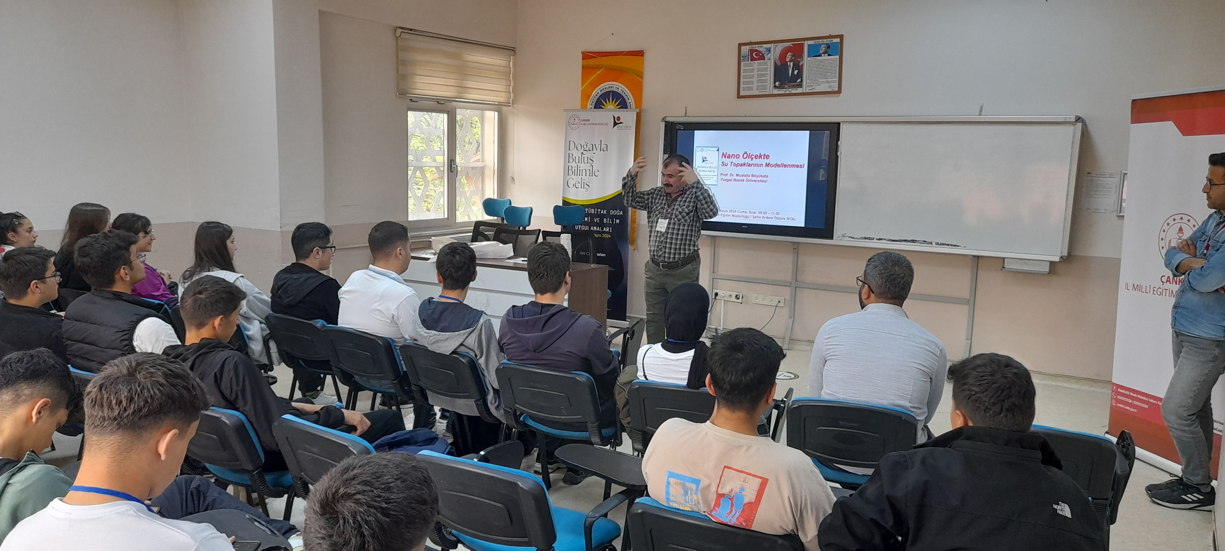 Proje kapsamında 24 Mayıs 2024 Cuma günü Çankırı Şehit Erdem Öztürk Mesleki ve Teknik Anadolu Lisesi’nde proje katılımcısı öğrencilerle bir araya gelen Prof. Dr. Mustafa Böyükata, “Nano Ölçekte Su Topaklarının Modellenmesi” konusunu işleyen uygulamalı etkinlikler ve etkileşimli bir yolla bilgiler paylaştı.