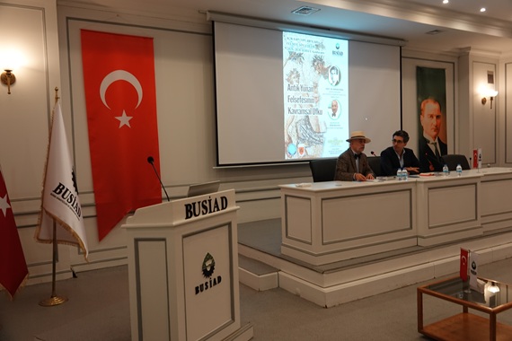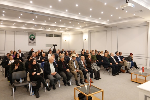 Soruları da yanıtlayan Prof. Dr. Erman Gören ve Dr. Gürkan Kaya’ya Çağdaş Eğitim Kooperatifi’nin “Kır Çiçekleri Okusun Diye” sosyal sorumluluk projesine adına yapılan bağışın sertifikası, BUSİAD Yüksek Danışma Kurulu Başkanı Ergun Hadi Türkay tarafından verildi.
