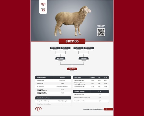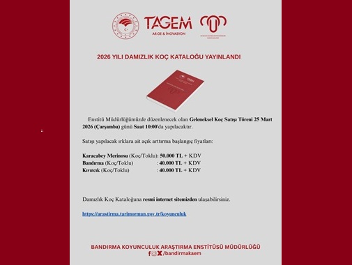 Dijital Kataloğa erişim için; https://arastirma.tarimorman.gov.tr/koyunculuk/Duyuru/182/2026-Yili-Geleneksel-Damizlik-Koc-Katalogu-Yayinlanmistir