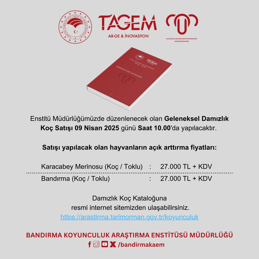 2025 Yılı Damızlık Koç Katalogu için;