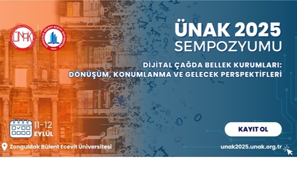 ANA TEMA VE KONULARDijital Çağda Bellek Kurumları: Dönüşüm, Konumlanma ve Gelecek PerspektifleriBellek Kurumlarında Değişen RollerGeleneksel Bellek Kurumları: Arşiv, Müze, KütüphaneKütüphane, Arşiv ve Müzelerin Ortak İşlevleriArşivler: Kurumsal ve Toplumsal HafızaKütüphaneler: Bilgiye Erişim ve EğitimMüzeler: Kültürel ve Sanatsal Mirasın KorunmasıDijital Çağda Yeni YaklaşımlarYapay Zekâ, Büyük Veri ve Kültürel MirasBağlantılı veriSanal Gerçeklik (VR) ve Artırılmış Gerçeklik (AR) ile Dijital DeneyimDijitalleşme ve Teknolojik Yeniliklerin EtkisiDijital Ortamların Fırsatları ve ZorluklarıKoruma, Erişim ve Pazarlama StratejileriDijital Arşivler ve Sanal SergilerDijital Arşivleme, Metaveri ve StandardizasyonYerel Bellek GirişimleriBellek Kurumlarında SürdürülebilirlikErişilebilirlik, ve Etik PerspektiflerFinansal ve Yapısal DayanıklılıkAçık Erişim ve Açık Bilim PolitikalarıKültürel Süreklilik ve TeknolojiUluslararası Perspektif: Avrupa Birliği ve UNESCO vb. YaklaşımlarıGeleceği Kurgulayan Bellek Kurumları: Eğitim ve Uzlaşma MisyonuHibrit Hizmet ModelleriGeleceğe Yönelik StratejilerDijital Geleceğin İnşasıDijitalleşmenin Sunduğu Yeni UfuklarGeleceğin Kültürel Mirasının Ortak İnşasıSempozyum detayları için; https://unak2025.unak.org.tr/index.php/kapsam/ Dijital Kültürel Miras Ağı, Deniz Çit, Nurdan Atalan Çayırezmez