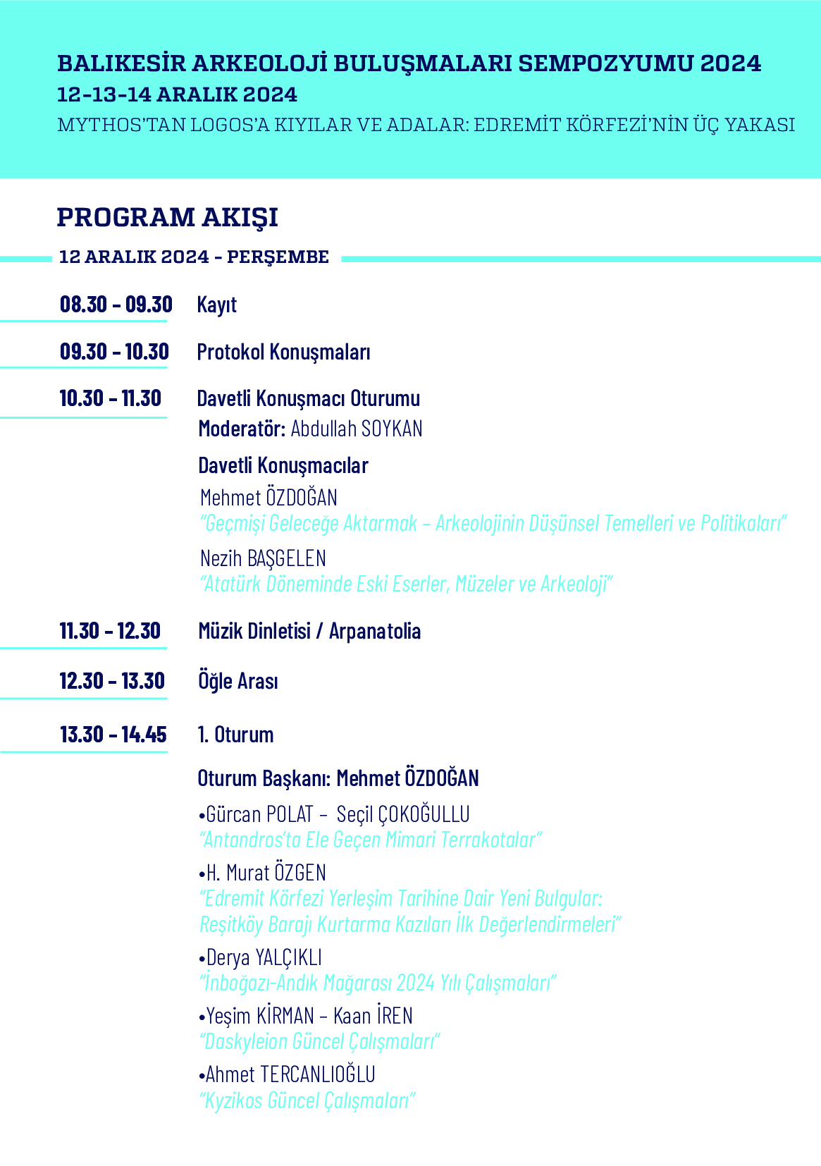 3 gün boyunca alanında uzman akademisyenler ve arkeologların katılımıyla 7 farklı oturumun yapılacağı Arkeoloji Buluşmaları; şehirde devam eden çalışma ve araştırmaların daha ileriye götürülmesine, Balıkesir’in arkeoloji alanında daha fazla gelişmesine katkı sağlayacak.