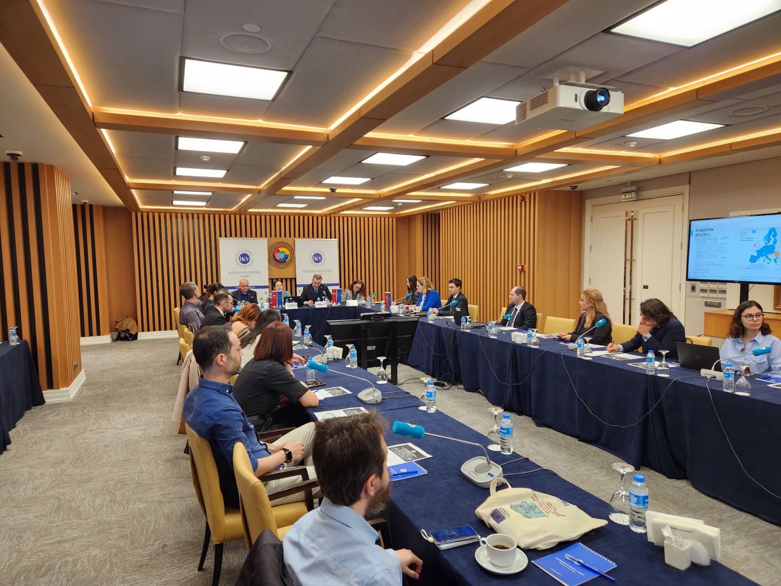 Moderatörlüğünü İKV Genel Sekreter Yardımcısı M. Gökhan Kilit’in üstlendiği toplantının ilk konuşmacısı İKV Genel Sekreteri Doç. Dr. Çiğdem Nas, Türkiye Cumhuriyeti vatandaşları için vizesiz seyahat ve gümrük birliği gibi konuların oldukça önemli olduğuna değinerek sözlerine başladı. Nas, İKV’nin uzun süredir vize konusu üzerinde durduğundan ve İKV’de bu konuyla ilgili pek çok çalışma yapıldığından bahsetti. Vize konusunun Türkiye-AB ilişkilerinde en sorunlu alanlardan biri olmaya devam ettiğini dile getiren Nas, AB’nin iç sınırlarının kaldırıldığı ve dış sınırlar konusunda da ortak politika alanlarının uygulandığı bir iç güvenlik alanı yaratma hedefine dikkat çekti. 2020 yılında sunulan Yeni Göç ve İltica Paktı’ndan bahseden Nas, bir tasarı olarak Komisyon tarafından sunulan bu politikanın çok fazla yenilik getirmediğini ifade etti. Nas, göç ve mülteciler alanında iş birliğinin geleceğinden bahsederken, insan hakları ve göçmen hakları konusunda karşılıklı çıkarlara dayalı hareket edileceğinden ve pragmatik tutumların daha fazla görüleceğinden söz etti. Son olarak, Schengen vizesinin dijitalleşme süreciyle ilgili bilgi veren Nas, bu sürecin 2028 itibarıyla tamamlanacağı; öte yandan, bu dijitalleşme sürecinin Türkiye’nin yaşadığı vize sorunlarına bir çözüm getiremeyeceğini de dile getirerek sözlerine son verdi.