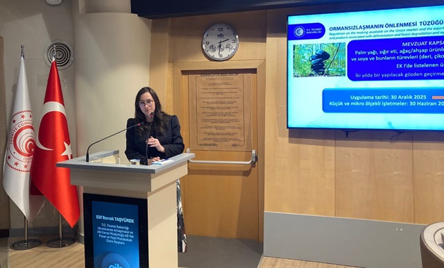 Ticaret Bakanlığı AB Tek Pazar ve Yeşil Mutabakatı Dairesi Başkanı Elif Berrak Taşyürek, “EUDR yalnızca çevresel bir düzenleme değil; ticaretin yeni pasaportudur. AB artık bir ürünün tasarımına ya da fiyatına bakmıyor; üretildiği ormandan elde edilen ağacın koordinatına, karbon salımına ve ormansızlaşmaya katkı yapıp yapmadığına bakıyor. Biz Bakanlık olarak hem mevzuat uyum sürecini yürütüyor hem de sektörlerimizin bu dönüşüme hazırlanması için yol haritaları oluşturuyoruz. Yükümlülüklerini zamanında yerine getiren firmalar sadece AB pazarına erişmeye devam etmeyecek, aynı zamanda ‘düşük riskli’ tedarikçi olarak rekabet üstünlüğü elde edecek.” diye konuştu.