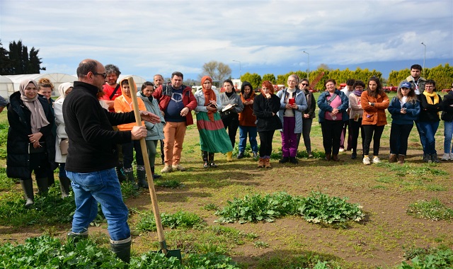 257 başvuru arasından belirlenen 80 kursiyer, Burhaniye’de faaliyet gösteren BAÇEM’de eğitimlerine başladı. 25 ilden 48 farklı meslek grubundan bir araya gelen kursiyerler, 15 gün boyunca hem pratik hem de teorik olarak eğitimlerini sürdürecek. BAÇEM Müdürü Nazım Tanrıkulu, Ziraat Yüksek Mühendisi Uğur Binbir ile Ziraat Mühendisi Zakir Kuleli tarafından verilen eğitimlerde kursiyerler; toprak tahlili, tarım alet ve makineleri ile çelikten fidan üretimi konularında bilgi ediniyor. Kursiyerlere; toprak ve bitkilerle yakından tanışma, teknik bilgi ve pratik beceri kazanma imkânı sunan kursta aynı zamanda aromaterapide kullanılan bitkilerin tarladan hasada, hasattan distilasyonuna kadar birçok konuda eğitimler veriliyor. BAÇEM’in koleksiyon bahçesi ve tarlalarında eğitimlerine devam eden kursiyerler, saha uygulamalarıyla teorikte öğrendiklerini pratiğe dönüştürebiliyor.