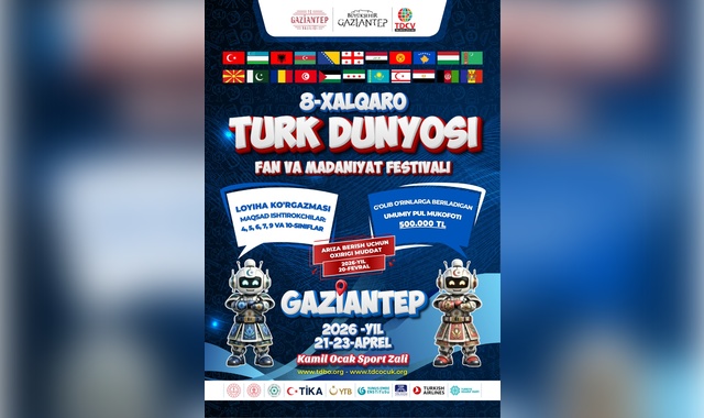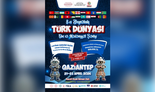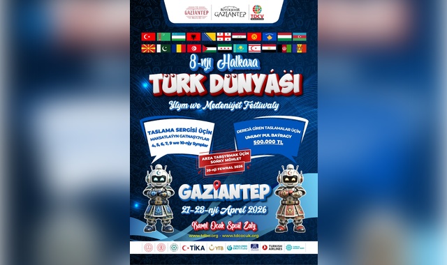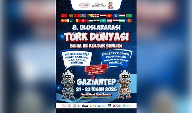 Gaziantep Valiliği ve Gaziantep Büyükşehir Belediyesi ile işbirliği içerisinde Türk Dünyası Çocuk Vakfı öncülüğünde bu sene 21 – 23 Nisan 2026 tarihlerinde Gaziantep’te düzenlenmesi planlanan “8. Uluslararası Türk Dünyası Bilim ve Kültür Şenliği” için başvuruların 20 Şubat 2026 Cuma günü sona ereceği bildirildi.