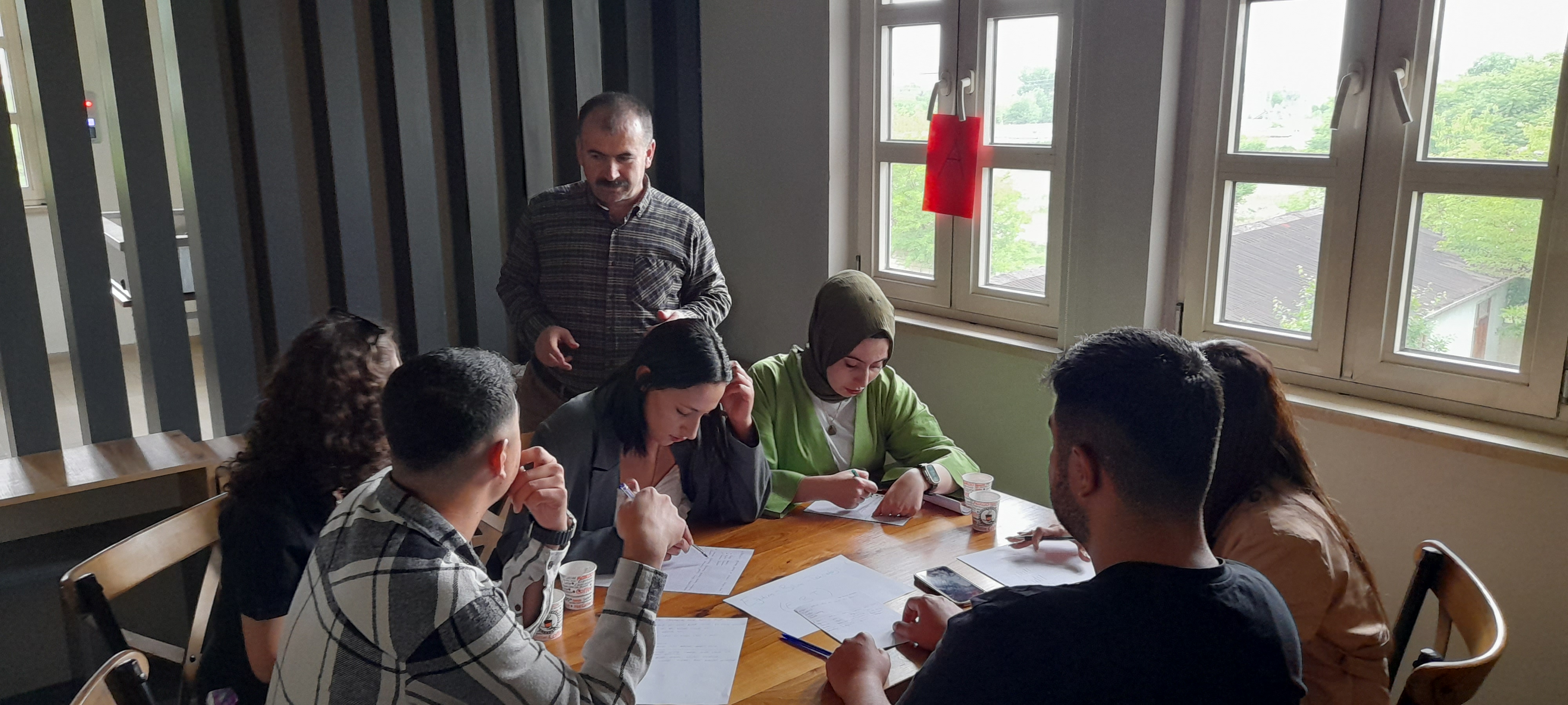 Girişimcilerin teknoloji ve yenilik odaklı iş fikirlerini katma değer ve nitelikli istihdam yaratma potansiyeli yüksek teşebbüslere dönüştürebilmeleri için fikir aşamasından pazara kadar olan faaliyetlerin çok aşamalı desteklenmesi amacına yönelik olan TEYDEB -1512 TÜBİTAK Teknogirişim Sermayesi Desteği Programı (BİGG) başvuru formu üzerinden gruplar halinde öğrencilere atölye çalışmaları da yaptıran Prof. Dr. Mustafa Böyükata, gençlerin uygulamalı proje teklifi hazırlama etkinliğini yaşattı ve sorulara da cevap verdi.