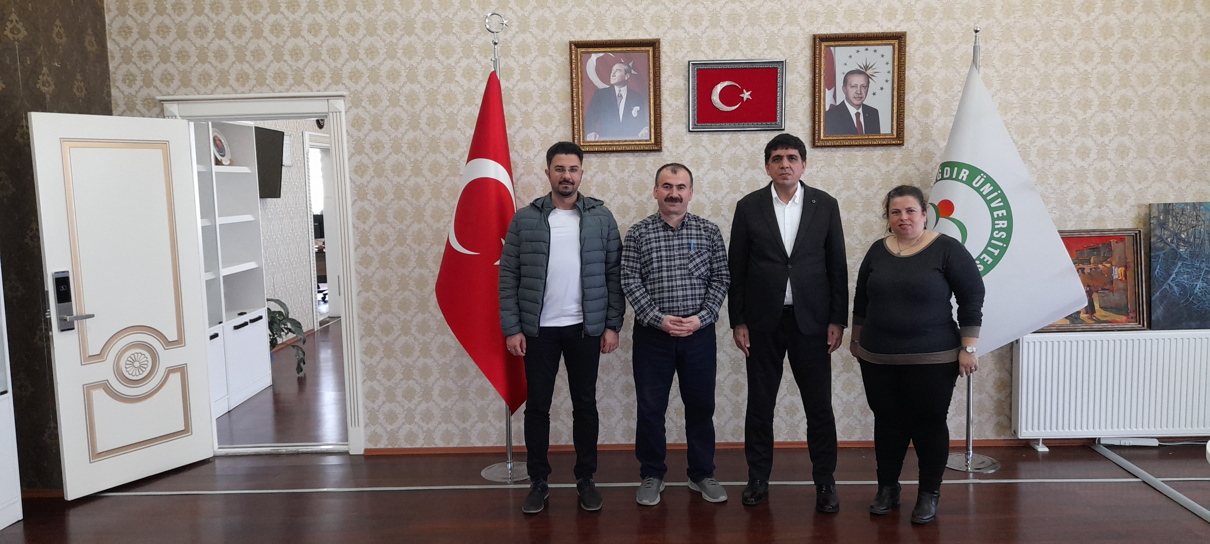 Iğdır Üniversitesi Rektörü Prof. Dr. Mehmet Hakkı Alma, makamında kabul ederek eğitime destek ve topluma hizmet niteliğinde yaptığı çalışmaları sebebiyle takdirlerini ifade edip sohbet etti ve hiçbir zaman desteklerini esirgemediğini belirterek Prof. Dr. Mustafa Böyükata’ya teşekkür edip üniversite sembollü tanıtım plaketi hediye etti.