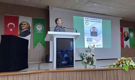 Öğrencilerin ve akademisyenlerin iştirakiyle gerçekleştirilen Iğdır Üniversitesi ana kampüsünde gerçekleştirilen “Girişimci Gençlik için Proje Tabanlı Çalışma Stratejileri” konulu seminerinde Prof. Dr. Mustafa Böyükata, yürüttükleri gönüllü eğitimlerden ve TÜBİTAK programlarından bahsederek, günümüz dünyasında takım çalışmalarının ne denli gerekli olduğunu farklı yönleriyle ortaya koydu.
